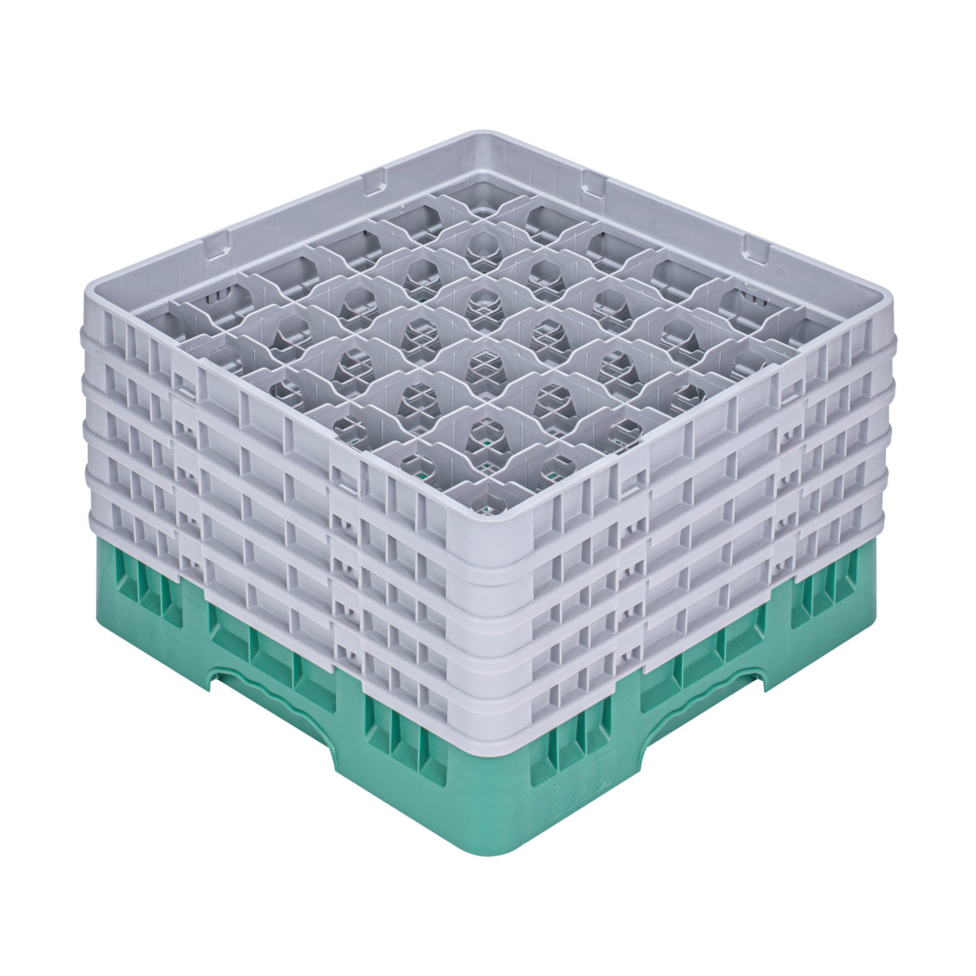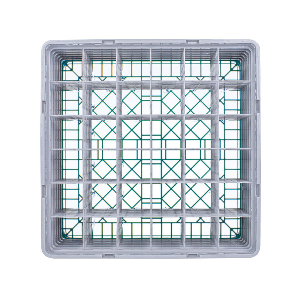 GREEN GLASS RACK - 36 COMPARTMENTS, 1 FULL AND 4 HALF DROP EXTENDERS