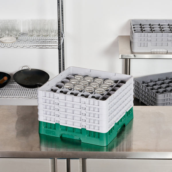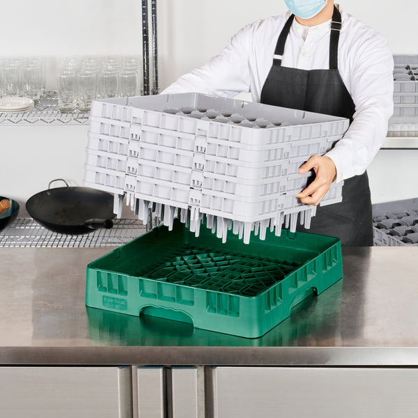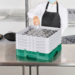 Effortlessly organize and transport your glassware with our Clean Tek Professional Green Glass Rack. This glassware storage solutions feature 36 compartments, ensuring each piece of barware is securely placed. Designed with a full drop extender, this dishwasher rack accommodates various glass sizes, enhancing its versatility. The inclusion of four half drop extenders in this compartment rack allows for customizable storage options. Made from durable PP, this commercial glass rack is built to withstand rigorous use in any foodservice environment. The easy-to-handle design of this glass rack makes it a practical choice for busy kitchens and bars. With open interior compartments, this barware organizer offers excellent airflow, promoting quick drying. Solid external walls provide additional protection to your glassware during transport and storage. Measuring 19.69 inches in length by 19.69 inches in width by 12.13 inches in height, this rack offers ample storage space while ensuring a compact footprint. Sold in a 1 count box.