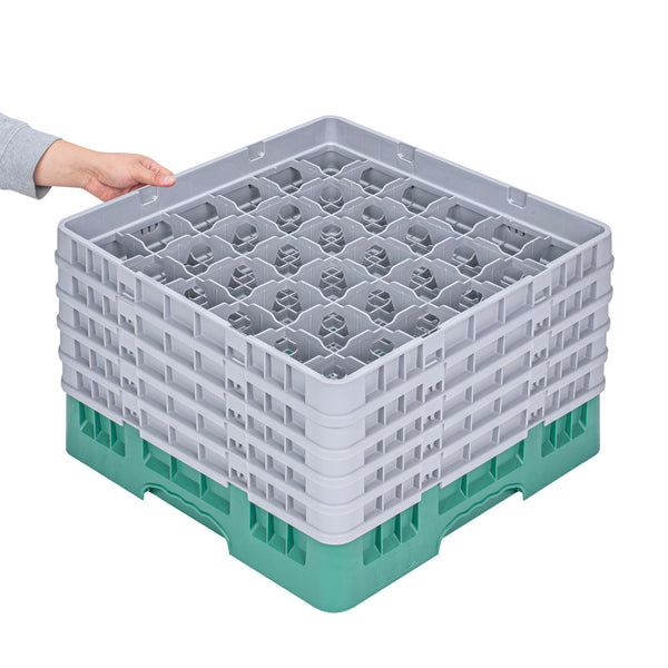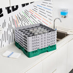 Clean Tek Professional Green Glass Rack - 36 Compartments, 1 Full Drop and 4 Half Drop Extenders - 19 3/4