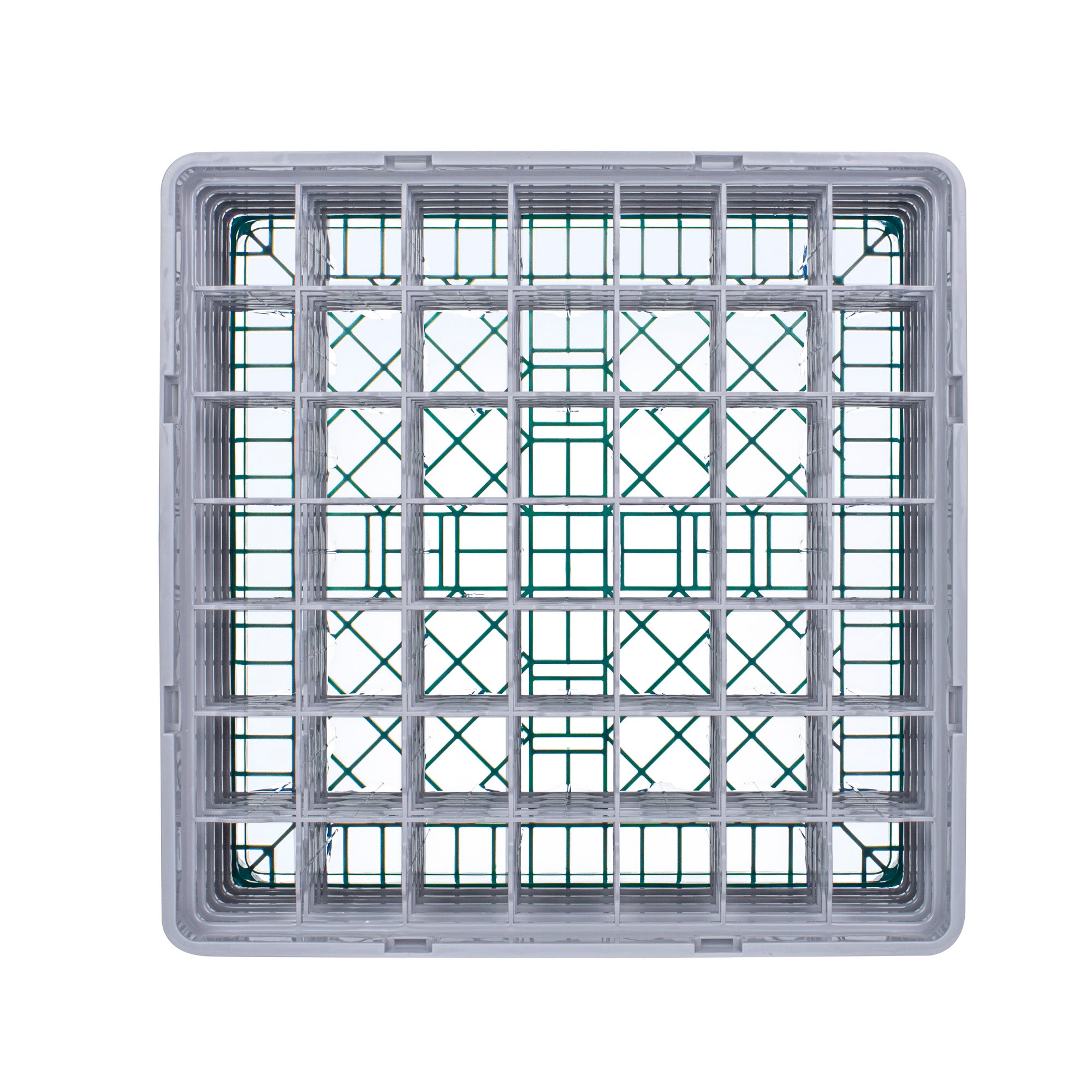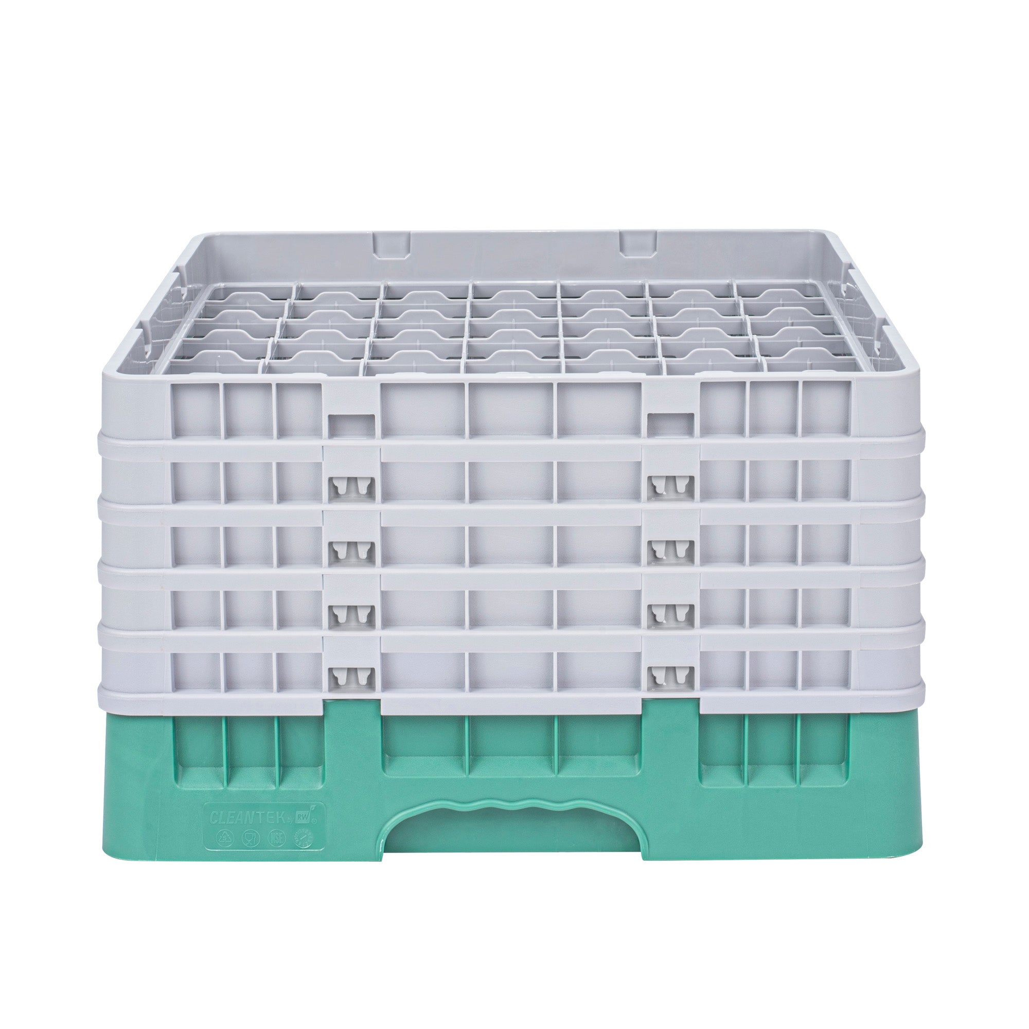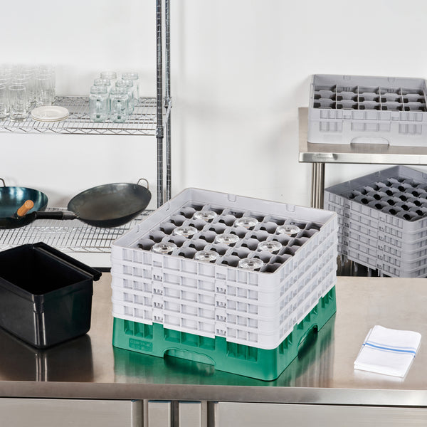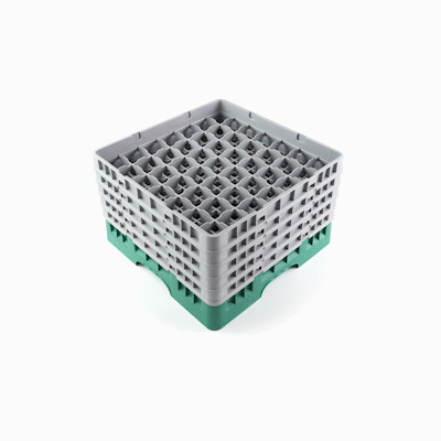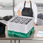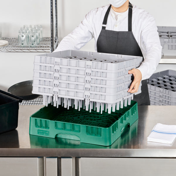 Optimize your glassware storage with our Clean Tek Professional Green Glass Rack. This dishwasher rack is designed with 49 compartments to neatly organize and protect your glassware. Featuring one full drop extender and four half drop extenders, this compartment rack provides flexible height options for different glass sizes. Constructed from durable PP, this commercial glass rack withstands the rigors of a busy kitchen environment. Their easy-to-handle design ensures effortless transportation and handling. With open interior compartments, this barware organizer allows for quick drying and efficient water drainage. Solid external walls of this glassware storage solution offer added protection during handling and washing. Measuring 19.69 inches in length by 19.69 inches in width by 12.13 inches in height, this glass rack fits most commercial dishwashers. Sold in a 1 count box.