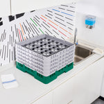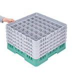 Clean Tek Professional Green Glass Rack - 49 Compartments, 1 Full Drop and 4 Half Drop Extenders - 19 3/4
