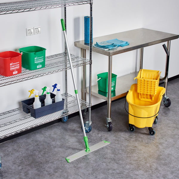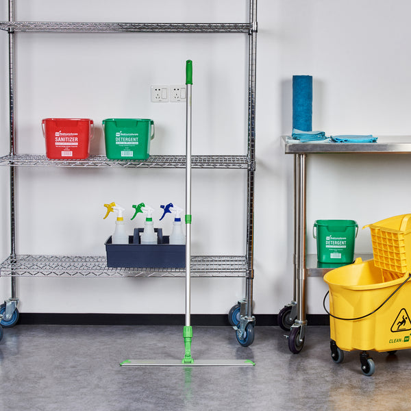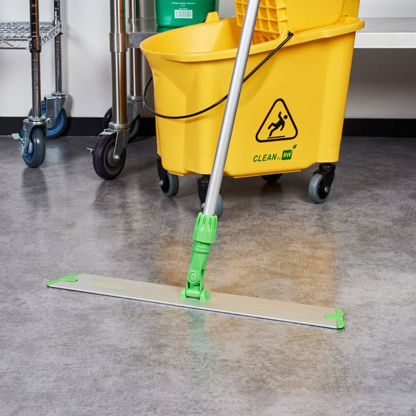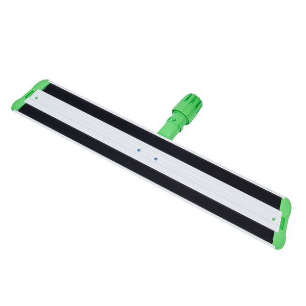 Maintain pristine cleanliness in your establishment with our Clean Tek Professional Green Microfiber Hook and Loop Wet / Dry Mop Frame. This dust mop frame is ideal for keeping your floors neat and clean by eliminating dust and dirt. Pair this wet mop frame with compatible telescopic handle (SKU: RWT1753G) and mop pads (SKU: RWT1832BL, RWT1835BL, and RWT1837G) for effective cleaning of floors. Made from durable aluminum, this flat mop frame withstands daily use and offers long-lasting use. The slim and flat design of this aluminum microfiber mop frame allows it to fit underneath furniture and equipment, making it ideal for thorough cleaning. Measuring 23.62 inches in length by 3.5 inches in width by 1.97 inches in height, this dry mop frame provides optimal reach to all corners of your establishment. Sold in a 1 count box. Handle and mop pads are available and sold separately.