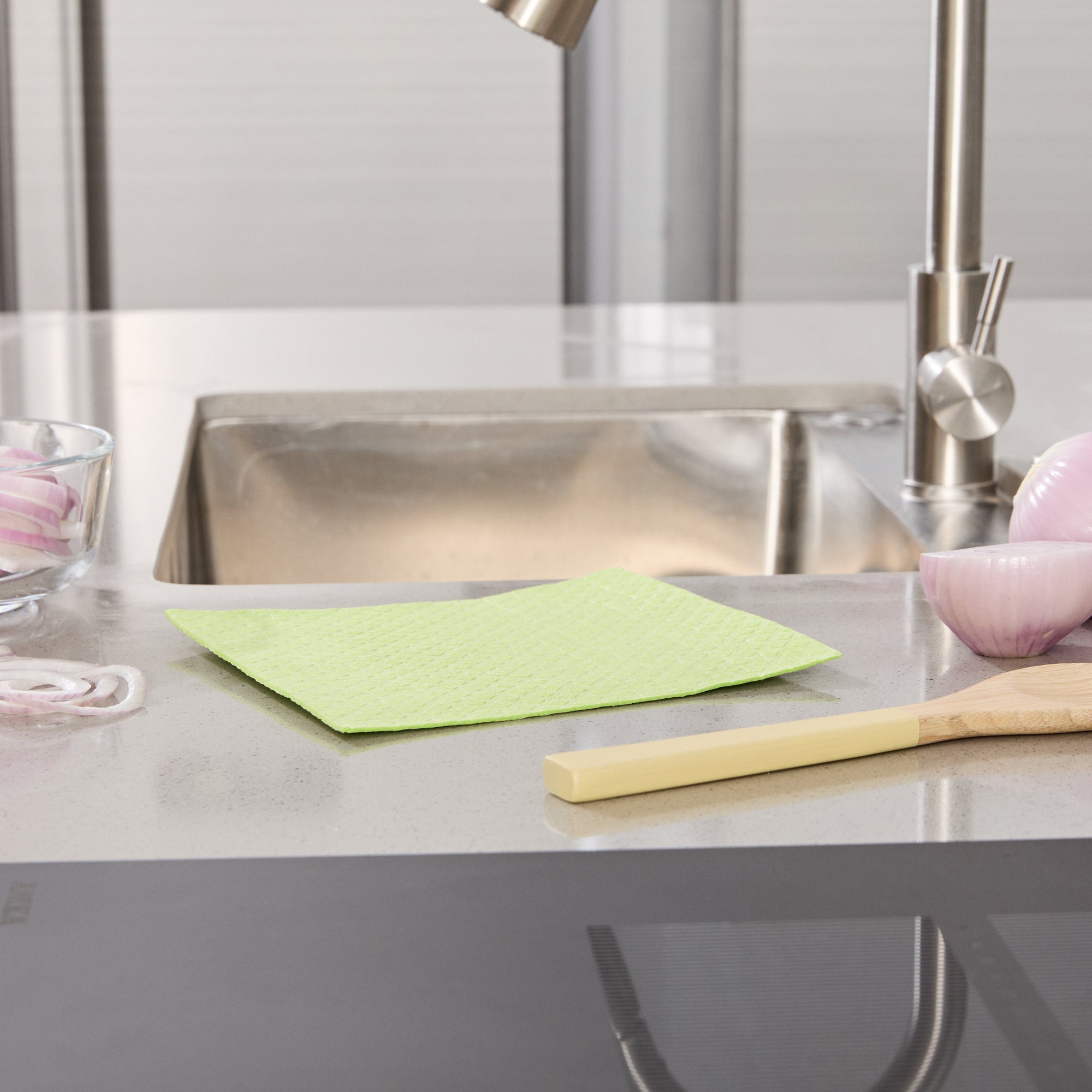 Streamline cleanup with our Clean Tek Professional Green Reusable Swedish Dishcloth. Designed from biodegradable cellulose, this multipurpose cleaning cloth offers eco-conscious functionality for professional kitchens. With a super absorbent texture, it quickly soaks up spills and wipes down surfaces with ease. This reusable Swedish dishcloth supports sustainable operations by minimizing single-use waste. Its dishwasher-friendly design ensures hassle-free sanitation between tasks. Ideal for scrubbing or drying, this cleaning towel works effectively on tile, marble, wood, or stainless steel. Lightweight and flexible, it transitions from soft to gritty depending on use. Measuring 6.77 inches in length and 7.68 inches in width, this green dishcloth enhances sanitation without sacrificing convenience. Sold in a 200 count box.