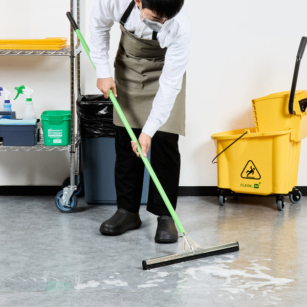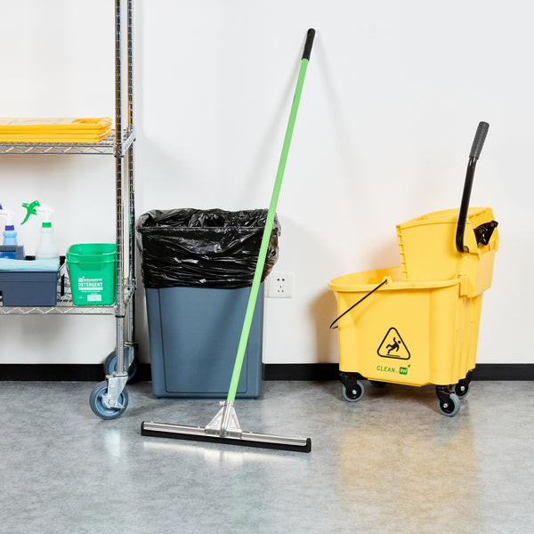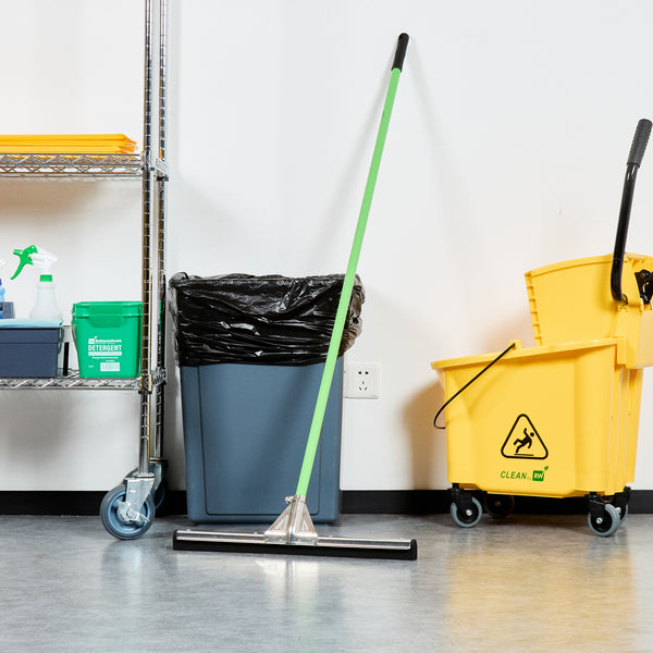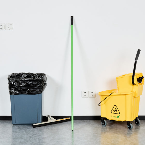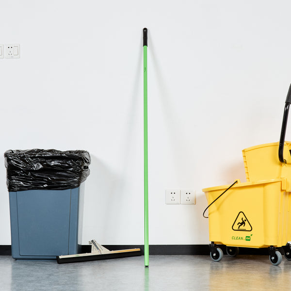 Enjoy a comfortable cleaning experience with our Clean Tek Professional Green Steel Handle. Pair this metal handle with our compatible floor squeegees (SKU: RWT1757S and RWT1758S) for an enhanced cleaning performance. This squeegee handle has an ergonomic design and offers a secure grip while cleaning. The 55-inch length of this green handle offers extended reach and minimizes bending or straining during prolonged use. Crafted from premium steel, this handle for squeegee is durable and sturdy, making it ideal for long-lasting use at your business establishment. This steel handle measures 55.12 inches in length. Sold in a 1 count box. Floor squeegees are available and sold separately.