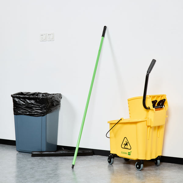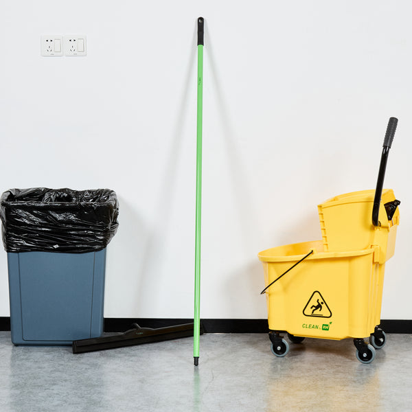 Achieve pristine windows and clean floors with our Clean Tek Professional Green Steel Handle. Pair this metal handle with our collection of compatible Clean Tek Professional window strip washers and floor squeegees for robust cleaning performance. This squeegee handle has a threaded tip that ensures a secure fit with your cleaning tool and reduces wobbling while cleaning. The ergonomic design of this green handle creates a comfortable grip and minimizes hand fatigue over prolonged use. Made from premium steel, this handle for squeegee boasts durability and ensures long-lasting use at your business establishment. Measuring 55.12 inches in length, this steel handle offers extended reach to hard-to-reach places. Sold in a 1 count box. Strip washers and floor squeegees are available and sold separately.