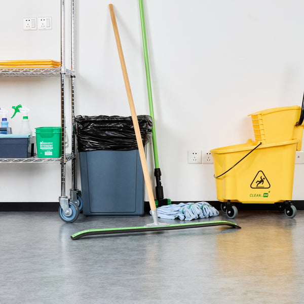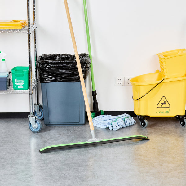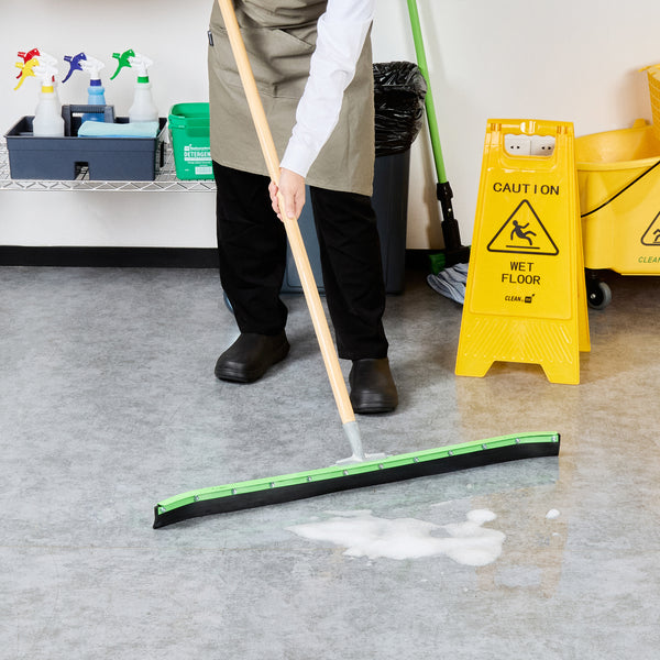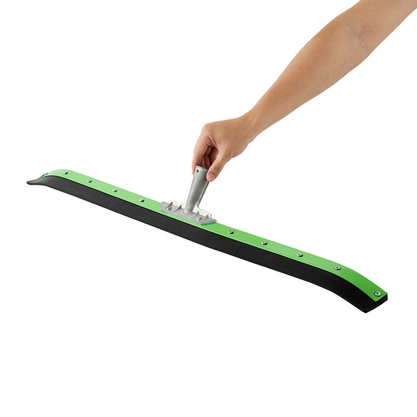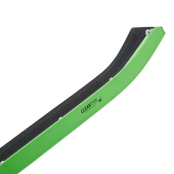 Ensure a clean floor with our Clean Tek Professional Green Steel Heavy-Duty Floor Squeegee. Pair this large floor squeegee with our collection of compatible Clean Tek Professional handles for a complete, ergonomic cleaning solution. The curved design of this floor squeegee conforms to surfaces for efficient water and debris removal along edges and corners. Featuring a black rubber blade, this shower squeegee excels at removing water and debris from various surfaces. Designed with a robust steel frame, this bathroom squeegee withstands heavy use and resists bending or warping over time. With dimensions of 35.83 inches in length by 5.91 inches in width by 2.76 inches in height, this commercial floor squeegee is ideal for large areas. Sold in a 1 count box. Handle is available and sold separately.