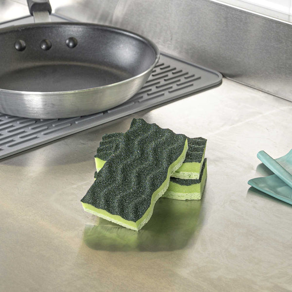 HEAVY-DUTY LIGHT AND DARK GREEN CELLULOSE SCOURING SPONGE - GROOVED