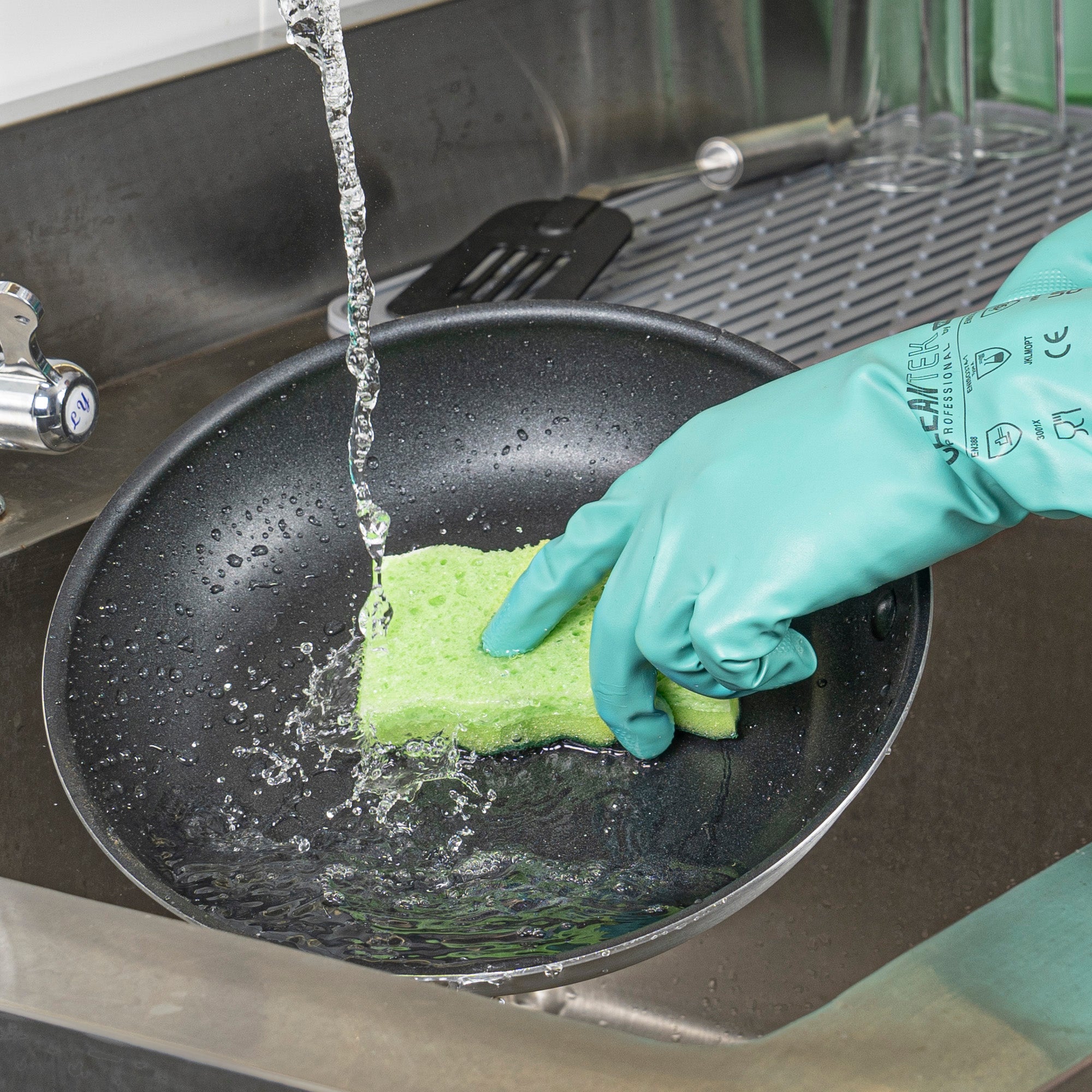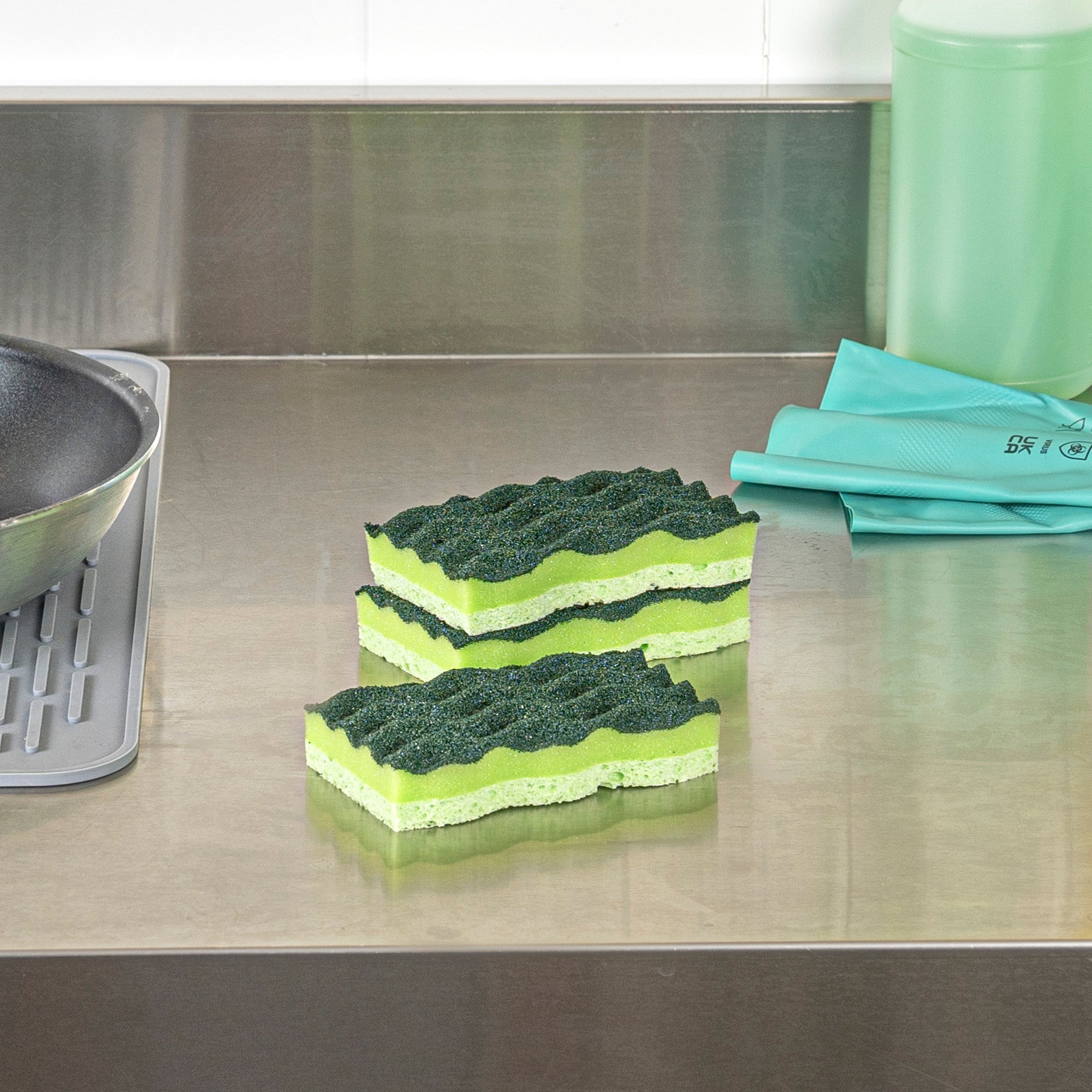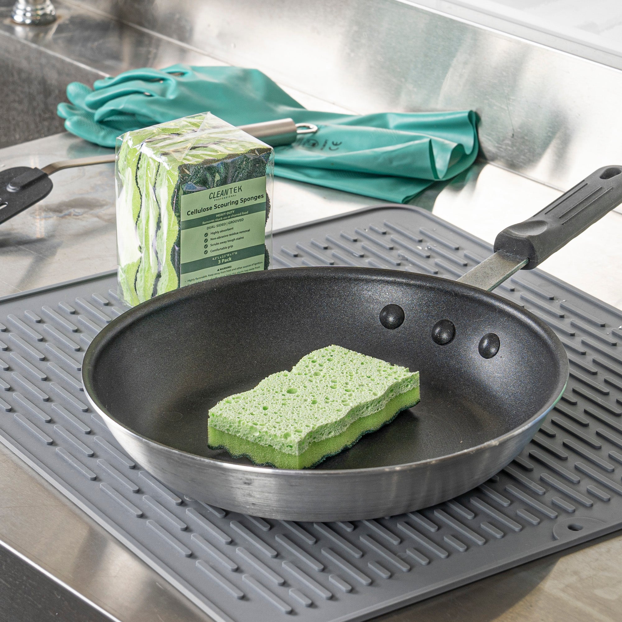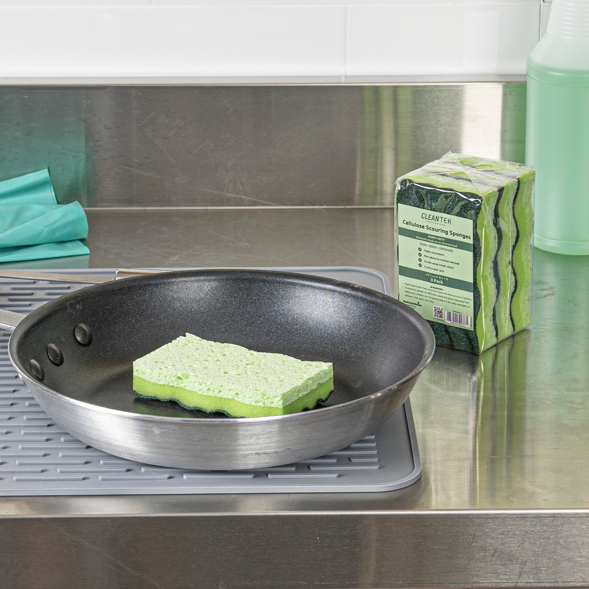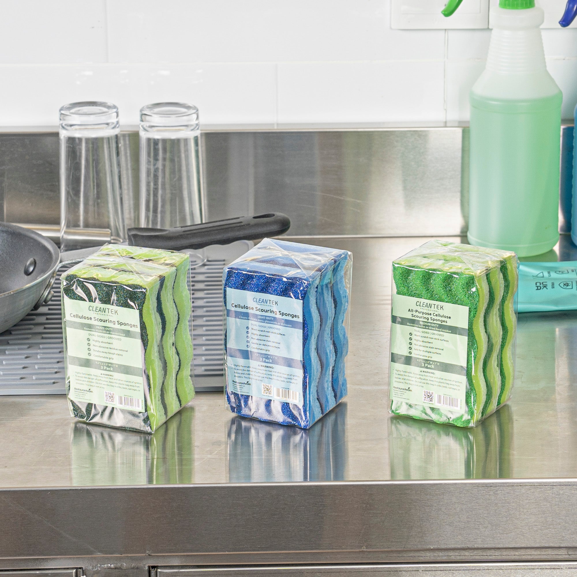 Scrub away stubborn kitchen grime effortlessly. The Clean Tek Professional Scrubbing Efficiency Cellulose Scouring Sponge features a tough scrubbing surface that quickly removes stubborn grime, making it a reliable cellulose scouring sponge for foodservice professionals. Designed with deep grooves, this heavy-duty scrubber efficiently cleans baked-on food residue, ensuring your cookware shines like new. Ideal for heavy-duty use in busy kitchens, this pot and pan scrubber withstands consistent use, making it an essential tool for any bustling commercial kitchen. Crafted from cellulose, these green sponges measure 4.53 inches in length, 2.56 inches in width, and 0.91 inches in height, providing a sustainable choice without compromising on performance. Trust in its durability and transform your cleaning routine. Each order includes 60 Clean Tek Professional Scrubbing Efficiency Cellulose Scouring Sponges.