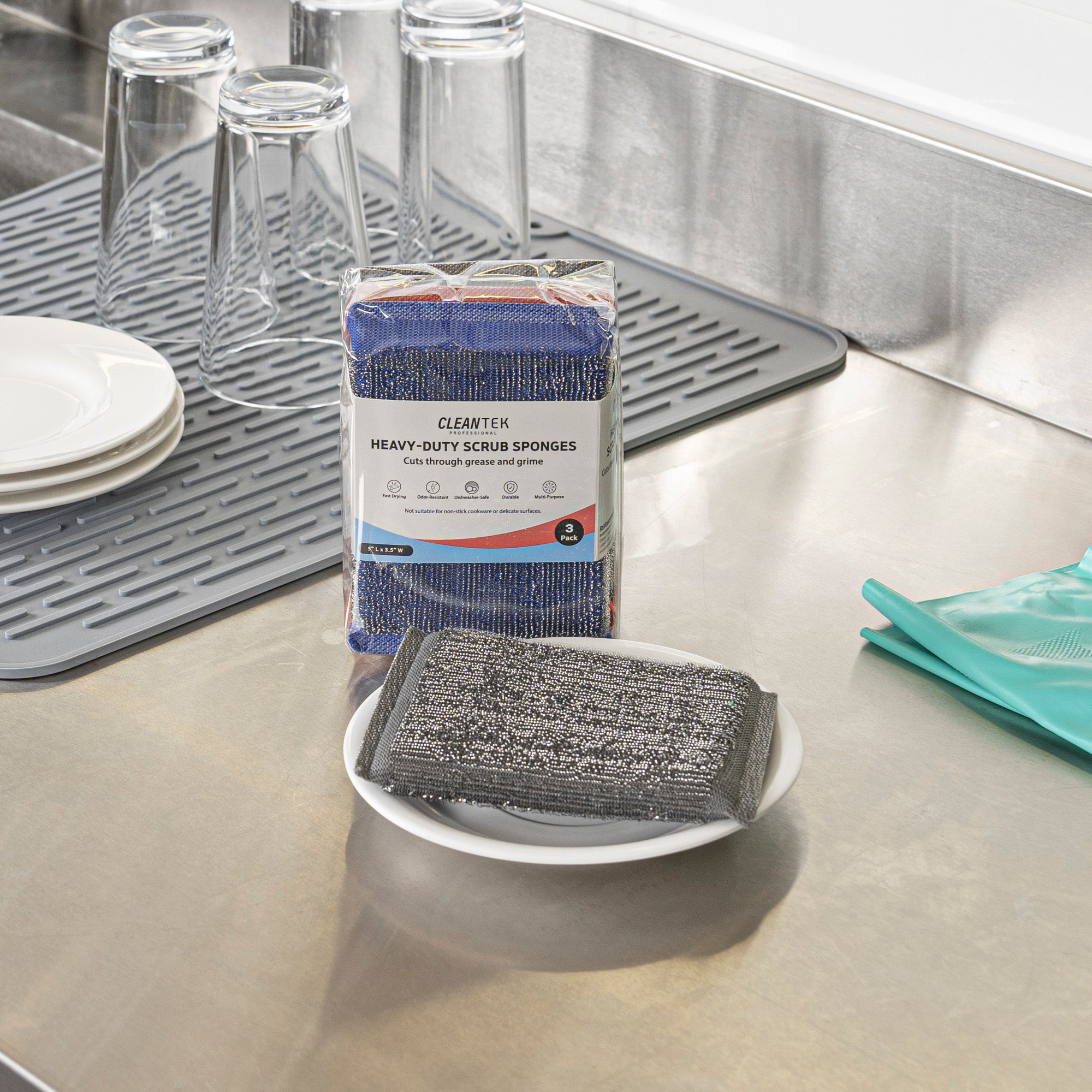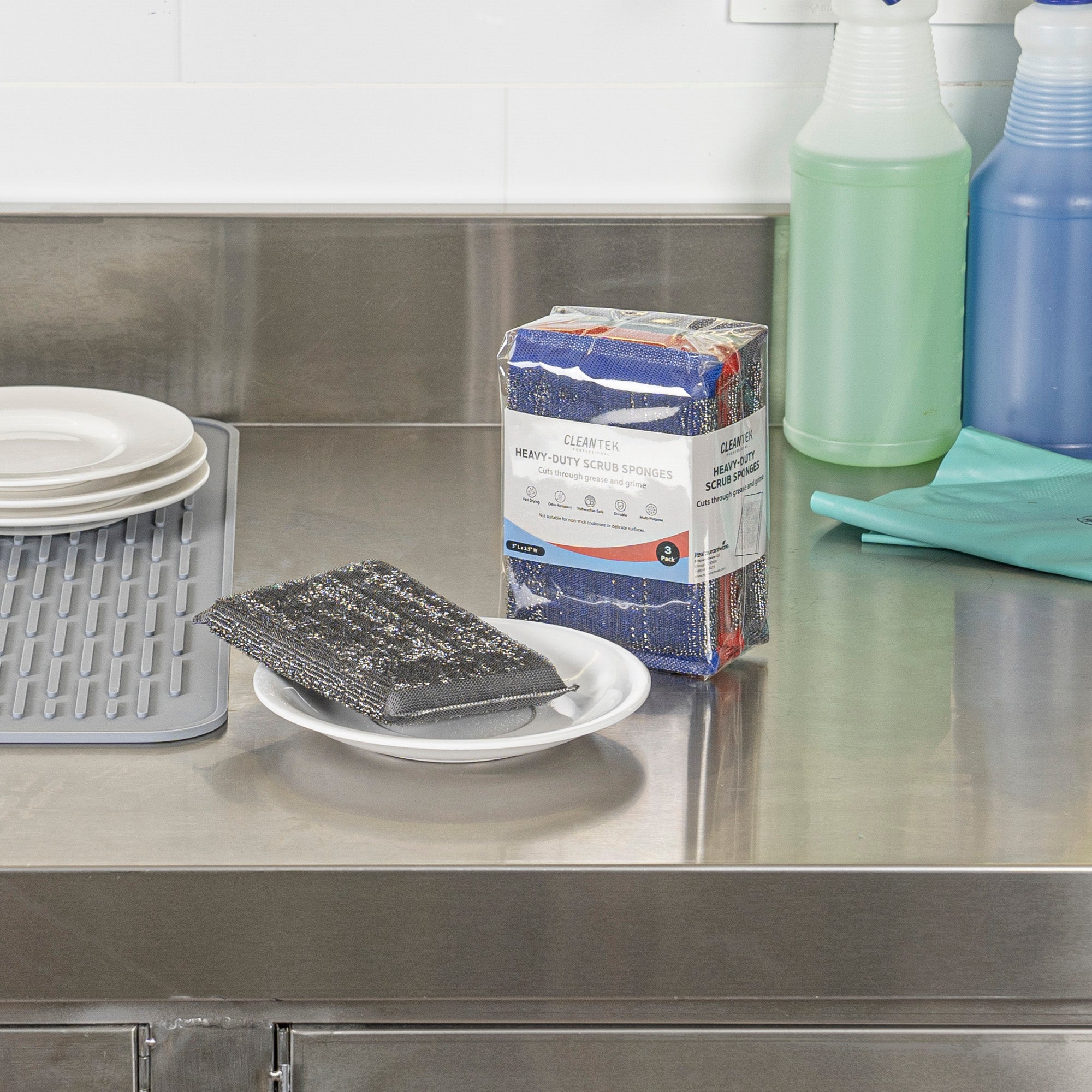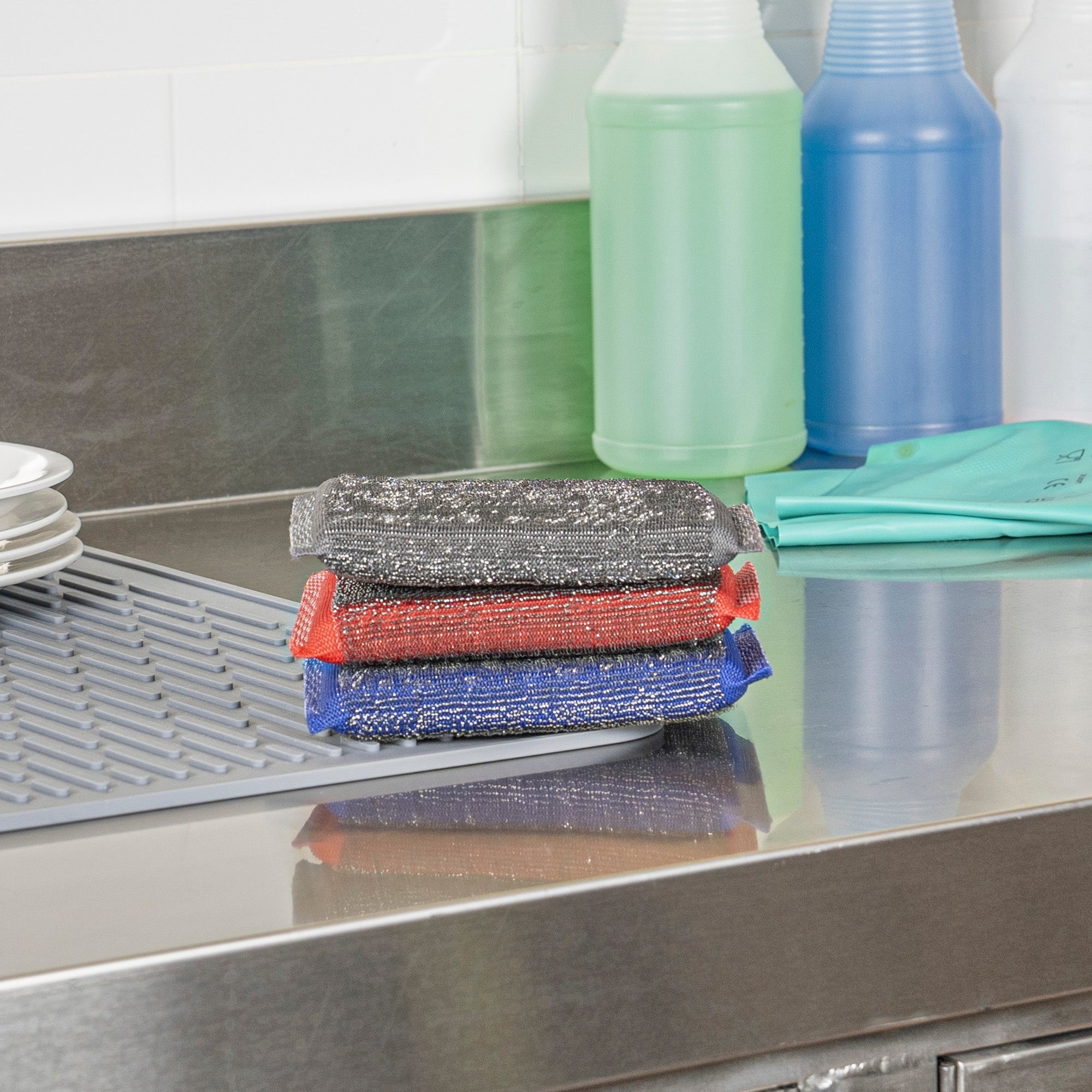 Enhance cleaning efficiency with quick-drying scouring pads. The Clean Tek Professional Multi-Use Plastic Scouring Pads are designed to minimize downtime between uses, thanks to their quick-drying feature, which ensures your kitchen cleaning tasks move swiftly. Constructed from durable plastic, these pads feature a double-sided design with iron wire, allowing you to scrub non-coated cookware without scratching, making them an ideal kitchen cleaning sponge. The odor-free nature of these pads guarantees a fresh and pleasant kitchen environment, enhancing the overall hygiene of your foodservice operation. Each scouring pad measures 5.12 inches in length and 3.54 inches in width, providing substantial coverage for efficient cleaning. Their multi-purpose functionality makes them an excellent choice for tackling various cleaning tasks, from pots and pans to countertops, without the worry of lingering odors. Improve your kitchen's cleanliness and efficiency by choosing these versatile scouring pads today. Each order includes 60 Clean Tek Professional Multi-Use Plastic Scouring Pads.