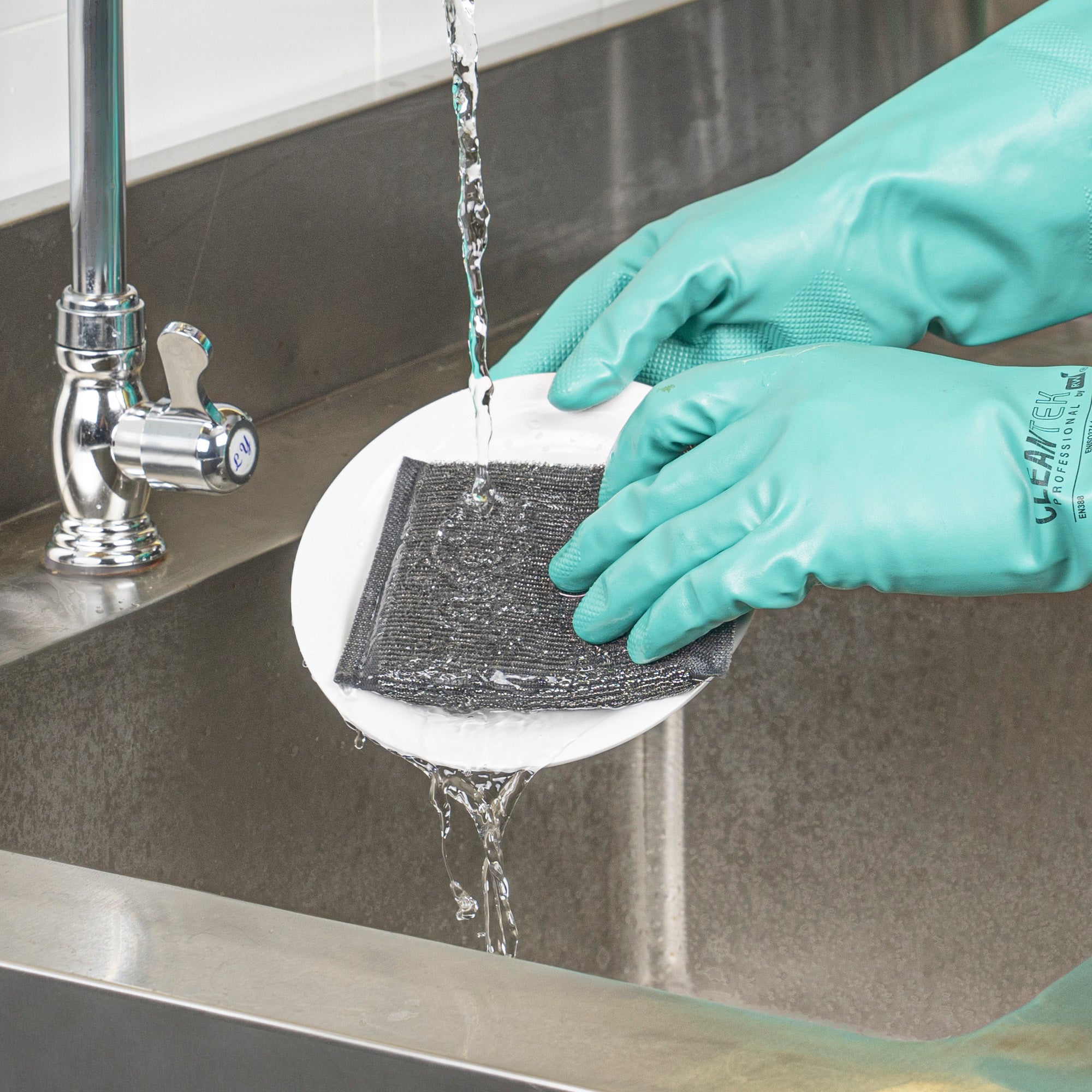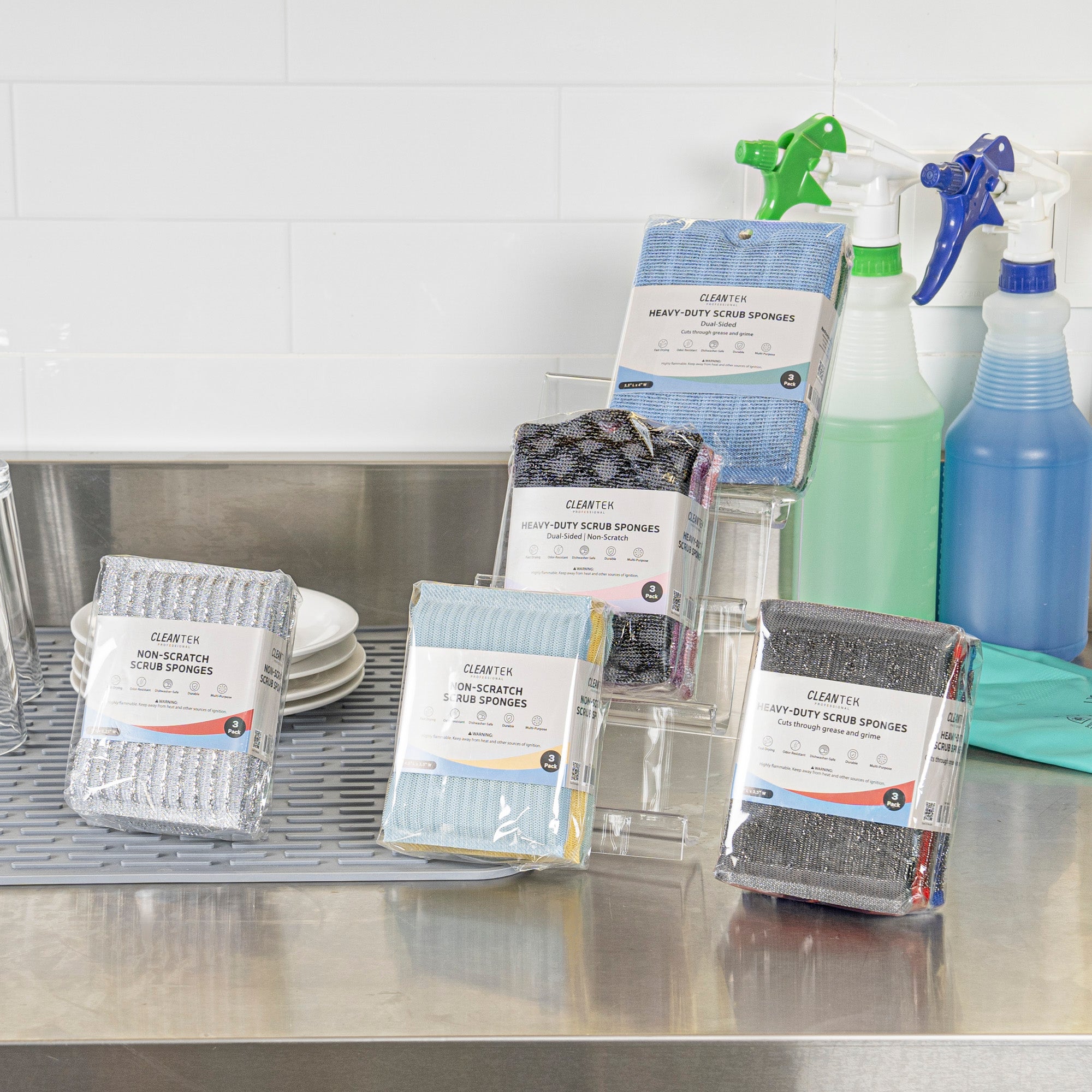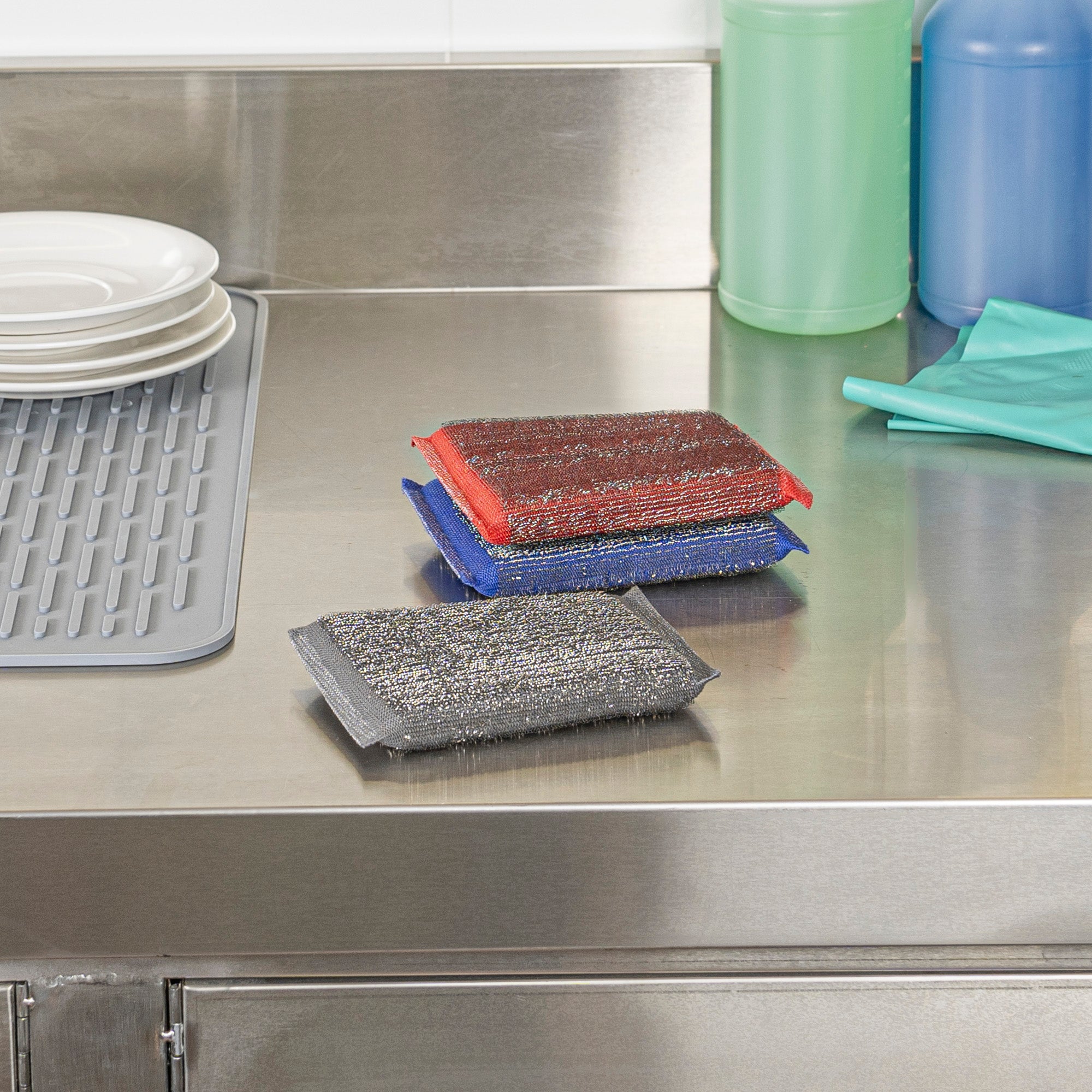 Enhance cleaning efficiency with quick-drying scouring pads. The Clean Tek Professional Multi-Use Plastic Scouring Pads are designed to minimize downtime between uses, thanks to their quick-drying feature, which ensures your kitchen cleaning tasks move swiftly. Constructed from durable plastic, these pads feature a double-sided design with iron wire, allowing you to scrub non-coated cookware without scratching, making them an ideal kitchen cleaning sponge. The odor-free nature of these pads guarantees a fresh and pleasant kitchen environment, enhancing the overall hygiene of your foodservice operation. Each scouring pad measures 5.12 inches in length and 3.54 inches in width, providing substantial coverage for efficient cleaning. Their multi-purpose functionality makes them an excellent choice for tackling various cleaning tasks, from pots and pans to countertops, without the worry of lingering odors. Improve your kitchen's cleanliness and efficiency by choosing these versatile scouring pads today. Each order includes 60 Clean Tek Professional Multi-Use Plastic Scouring Pads.