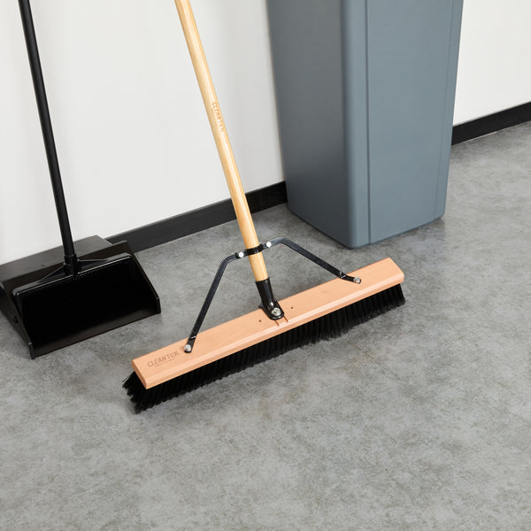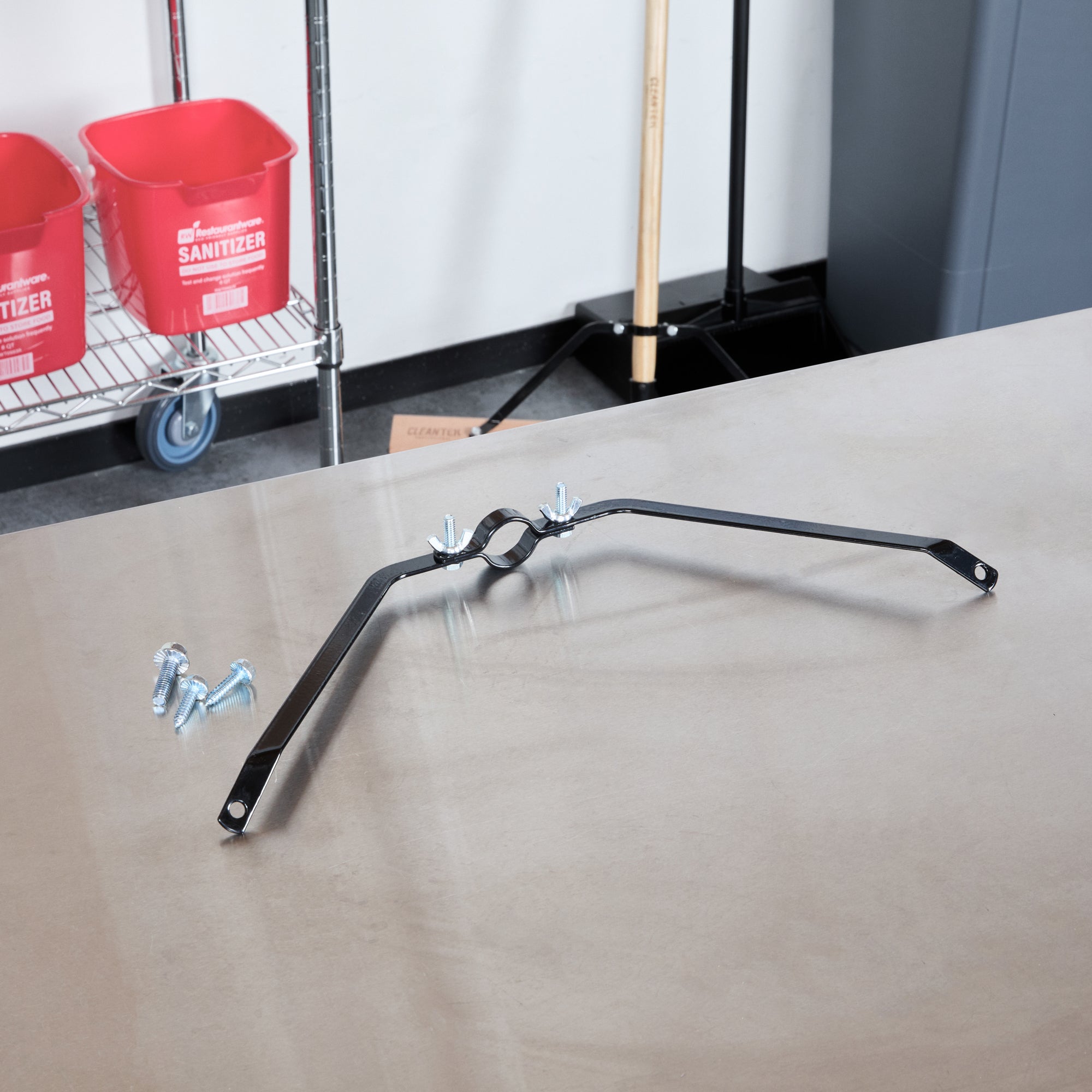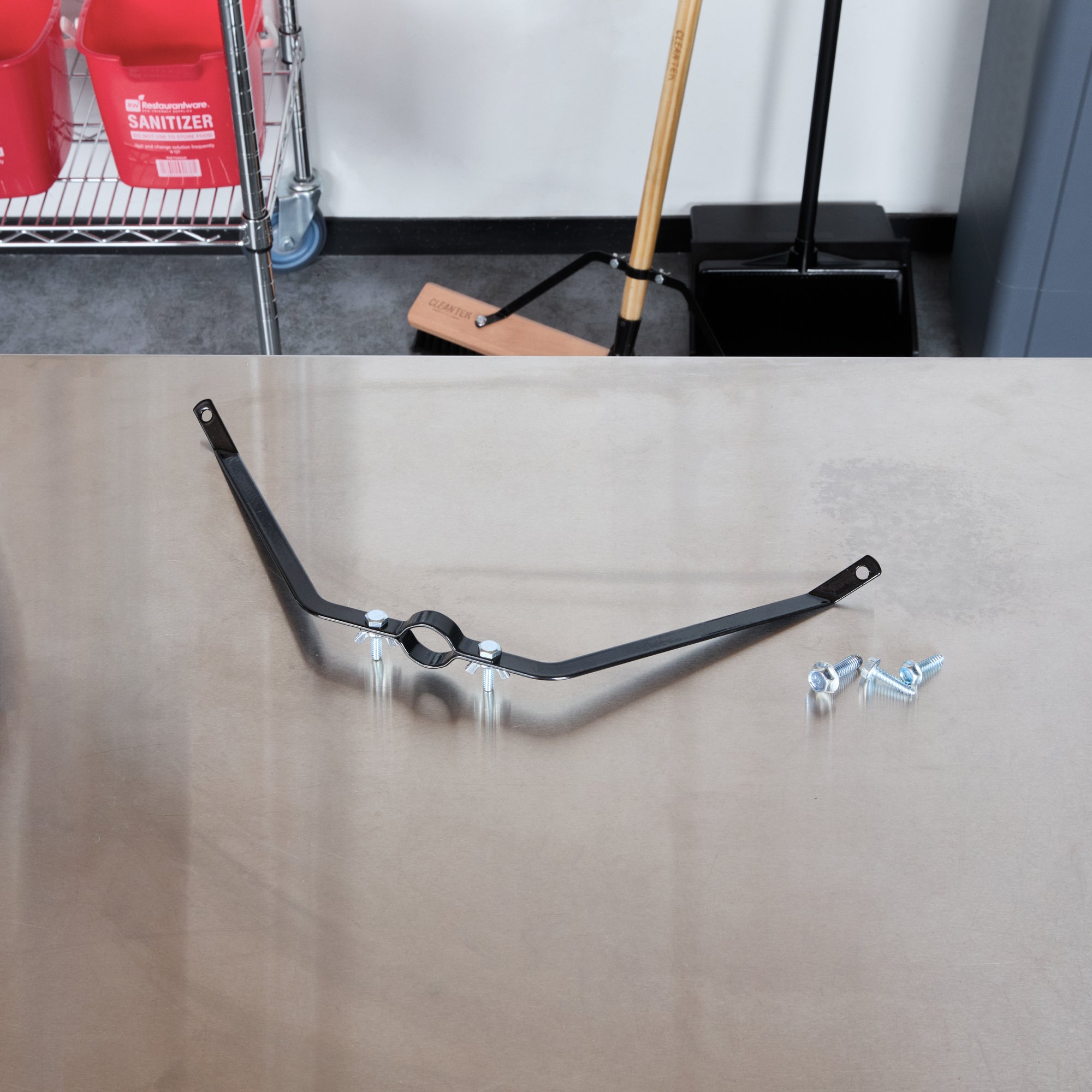 Elevate your cleaning efficiency with our Clean Tek Professional Iron Black Powder-Coated Brace. Crafted from durable iron, this brace ensures your broom remains sturdy during rigorous cleaning tasks. With its sleek, powder-coated finish, this iron brace resists rust and corrosion, ensuring long-lasting performance. Engineered for precision, this broom brace securely attaches to our collection of compatible Clean Tek Professional broom handles and broom heads, reinforcing the connection between the handle and broom head to minimize wobbling. Featuring multiple pre-drilled holes, this push broom brace allows for easy installation and adjustment to achieve a perfect fit for your specific broom. The contoured shape of this brace broom ensures a perfect fit with the wooden handle, maintaining a clean and professional appearance. For added convenience, the hardware is included for quick and easy installation. Measuring 11.42 inches in length by 0.39 inches in width by 0.39 inches in height, this black brace offers a compact yet robust solution for your cleaning needs. Sold in a 1 count box. Handles and broom heads are available and sold separately,