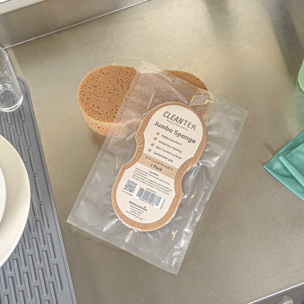 Enhance cleaning efficiency with flexible, reliable sponges. The Clean Tek Professional Jumbo Size Large Cleaning Sponge features a flexible design that easily reaches hard-to-reach corners, making it a practical choice for any commercial kitchen. With a substantial size of 8.66 inches in length and 4.33 inches in width, these sponges are perfect for tackling large surfaces. Made from plastic, this commercial kitchen sponge effectively cleans countertops and everyday spills, ensuring a pristine workspace. Its durable construction not only withstands frequent use but also boosts dishwashing productivity, making it an essential tool for maintaining hygiene in bustling foodservice environments. Invest in these versatile sponges to streamline your cleaning routine and keep your kitchen spotless. Each order includes 1 Clean Tek Professional Jumbo Size Large Cleaning Sponge.