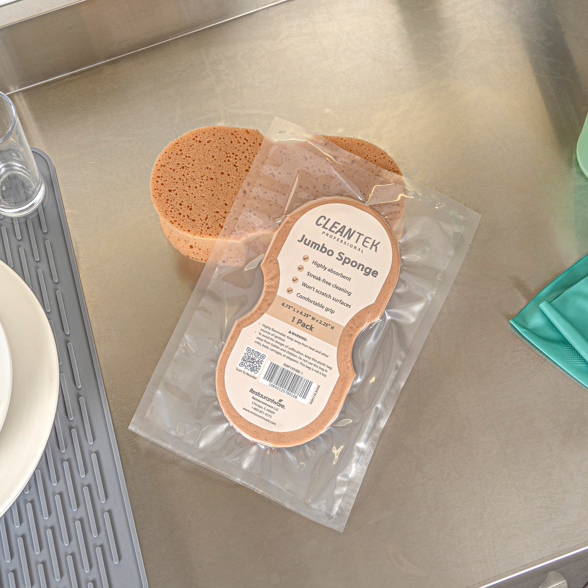 Enhance cleaning efficiency with flexible, reliable sponges. The Clean Tek Professional Jumbo Size Large Cleaning Sponge features a flexible design that easily reaches hard-to-reach corners, making it a practical choice for any commercial kitchen. With a substantial size of 8.66 inches in length and 4.33 inches in width, these sponges are perfect for tackling large surfaces. Made from plastic, this commercial kitchen sponge effectively cleans countertops and everyday spills, ensuring a pristine workspace. Its durable construction not only withstands frequent use but also boosts dishwashing productivity, making it an essential tool for maintaining hygiene in bustling foodservice environments. Invest in these versatile sponges to streamline your cleaning routine and keep your kitchen spotless. Each order includes 100 Clean Tek Professional Jumbo Size Large Cleaning Sponges.