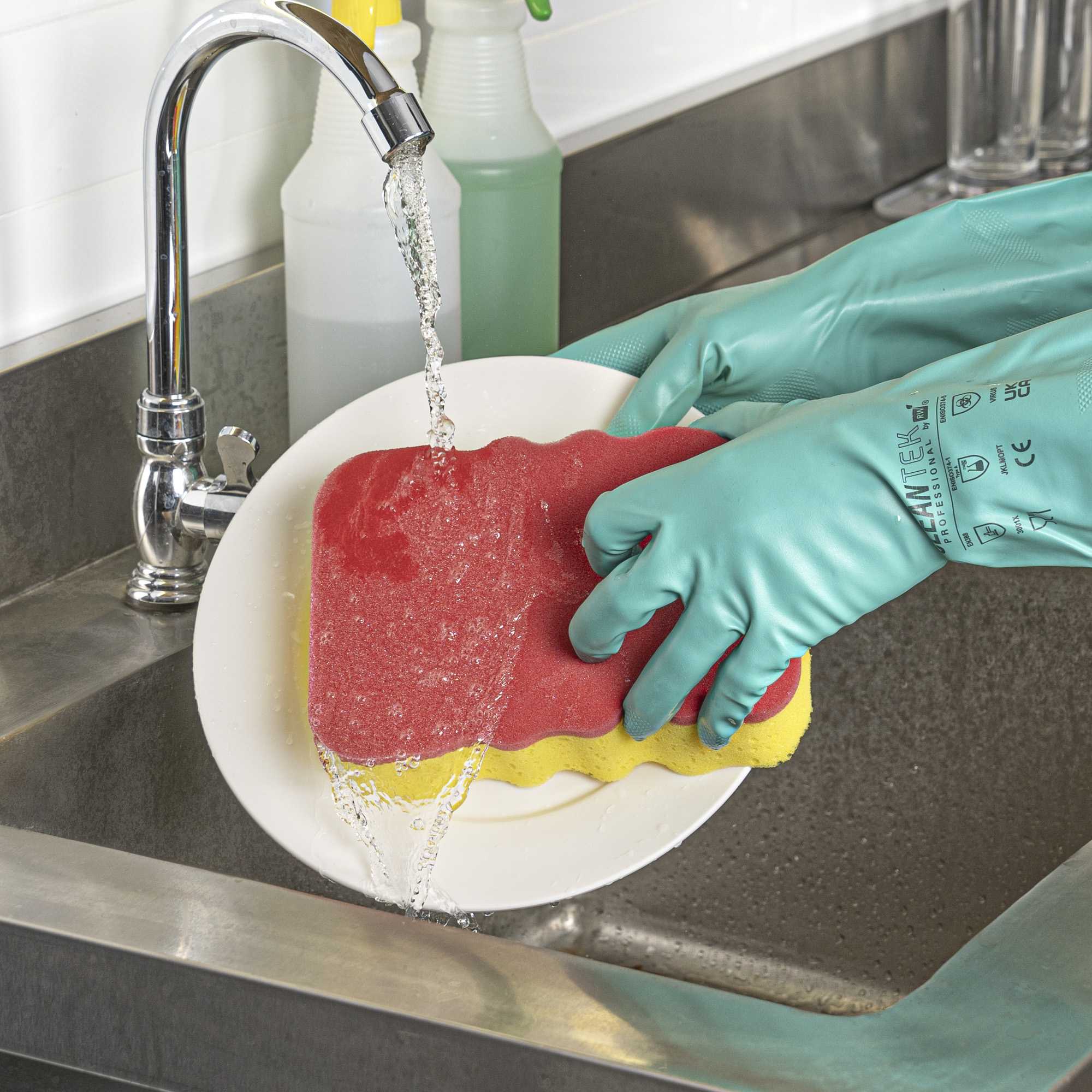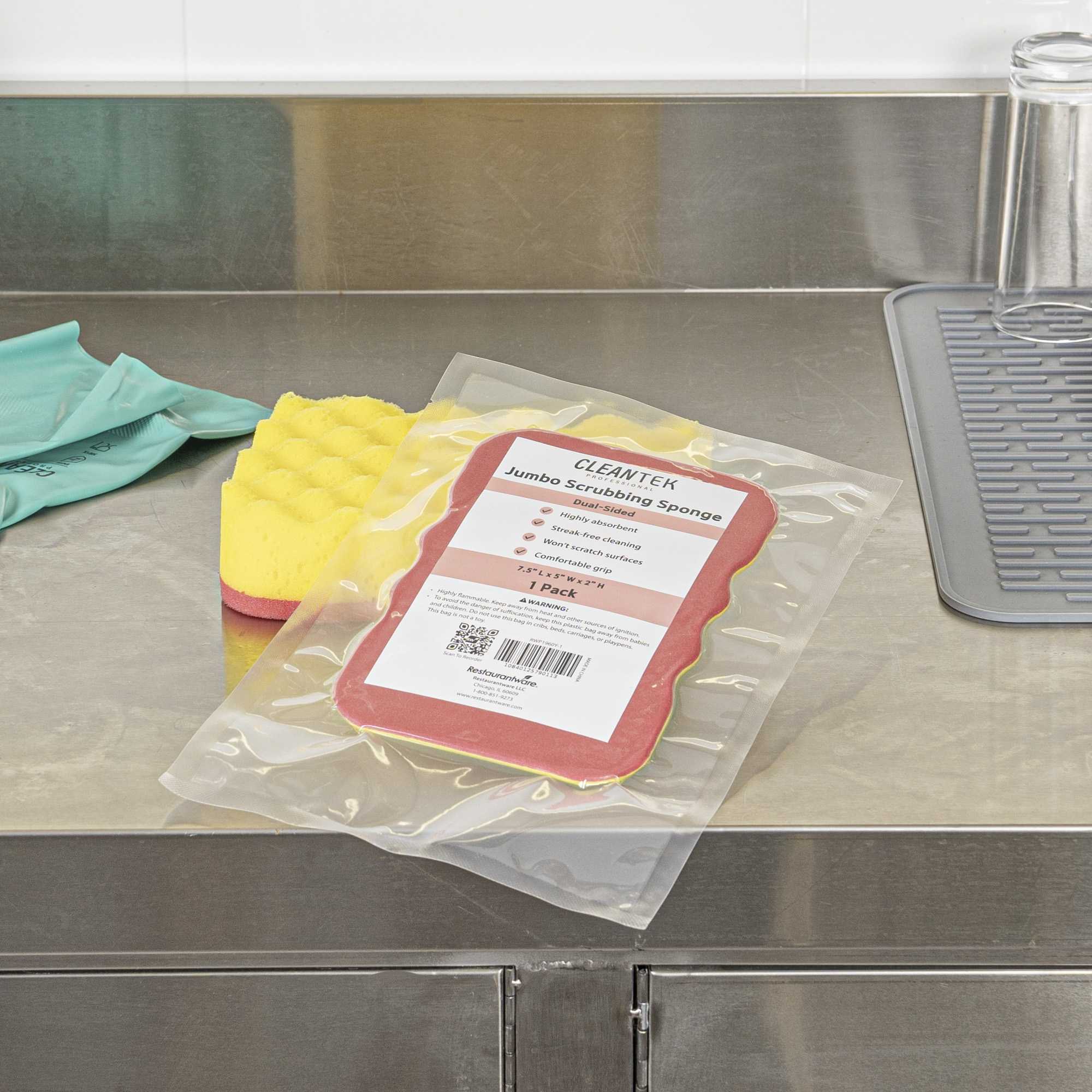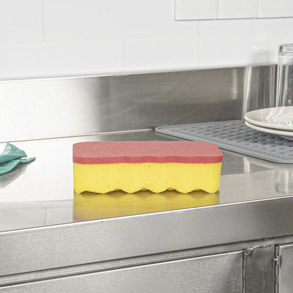 Enhance your cleaning efficiency with ergonomic comfort and flexibility. Clean Tek Professional Dual-Action Cleaning Sponge combines a sponge and scouring pad, maximizing cleaning efficiency across multiple surfaces, such as walls, floors, and countertops, making it an essential cleaning sponge. The flexible design of this scouring sponge adapts to hard-to-reach corners, ensuring thorough clean-up of every nook and cranny. With an ergonomic grip design, this dual-action sponge minimizes hand fatigue during prolonged use, improving user comfort in demanding settings. Measuring 7.48 inches in length, 5.12 inches in width, and 1.97 inches in height, its compact yet effective size is perfect for professional use in busy kitchens and catering operations. Invest in reliable cleaning solutions today with our versatile cleaning sponge. Each order includes 1 Clean Tek Professional Dual-Action Cleaning Sponge.