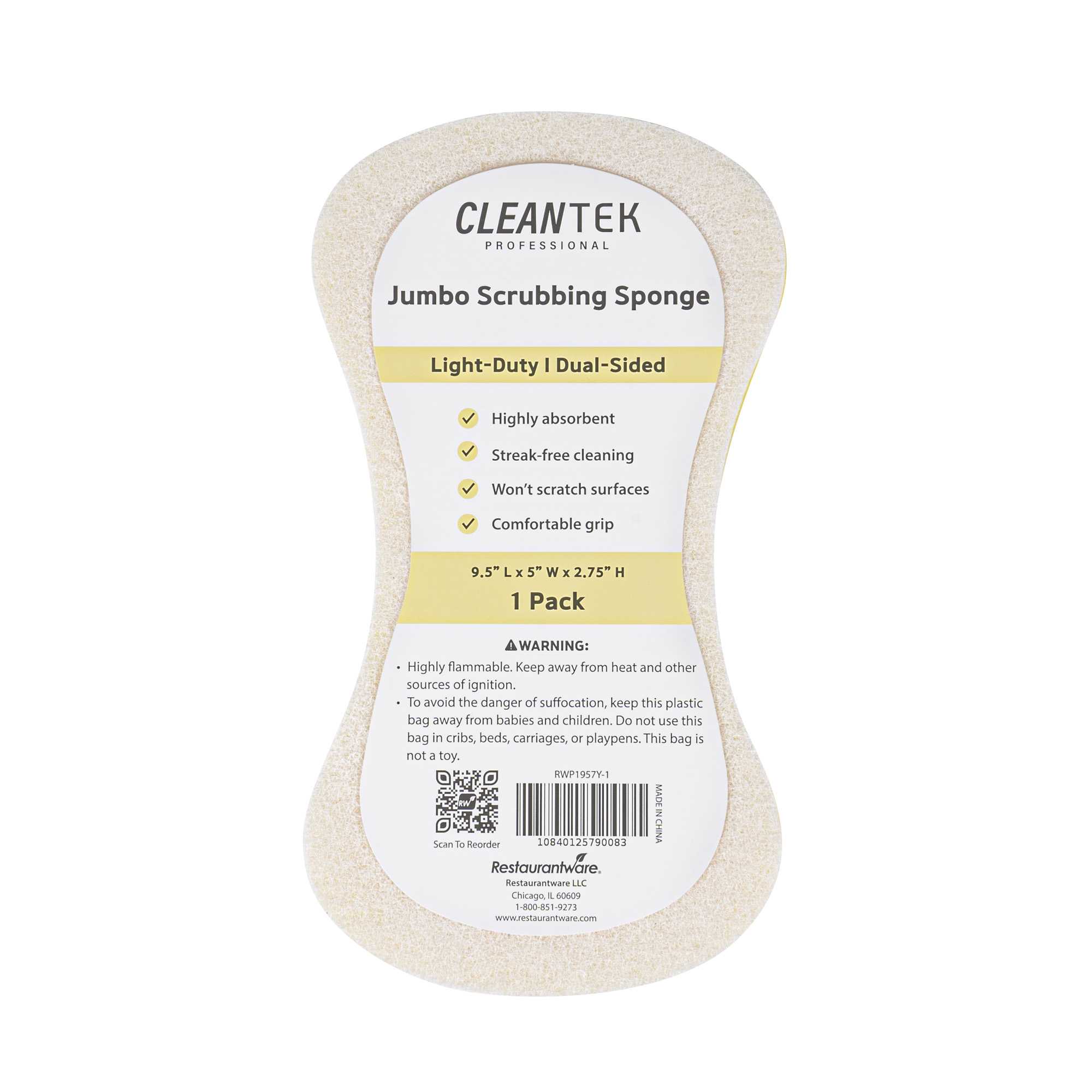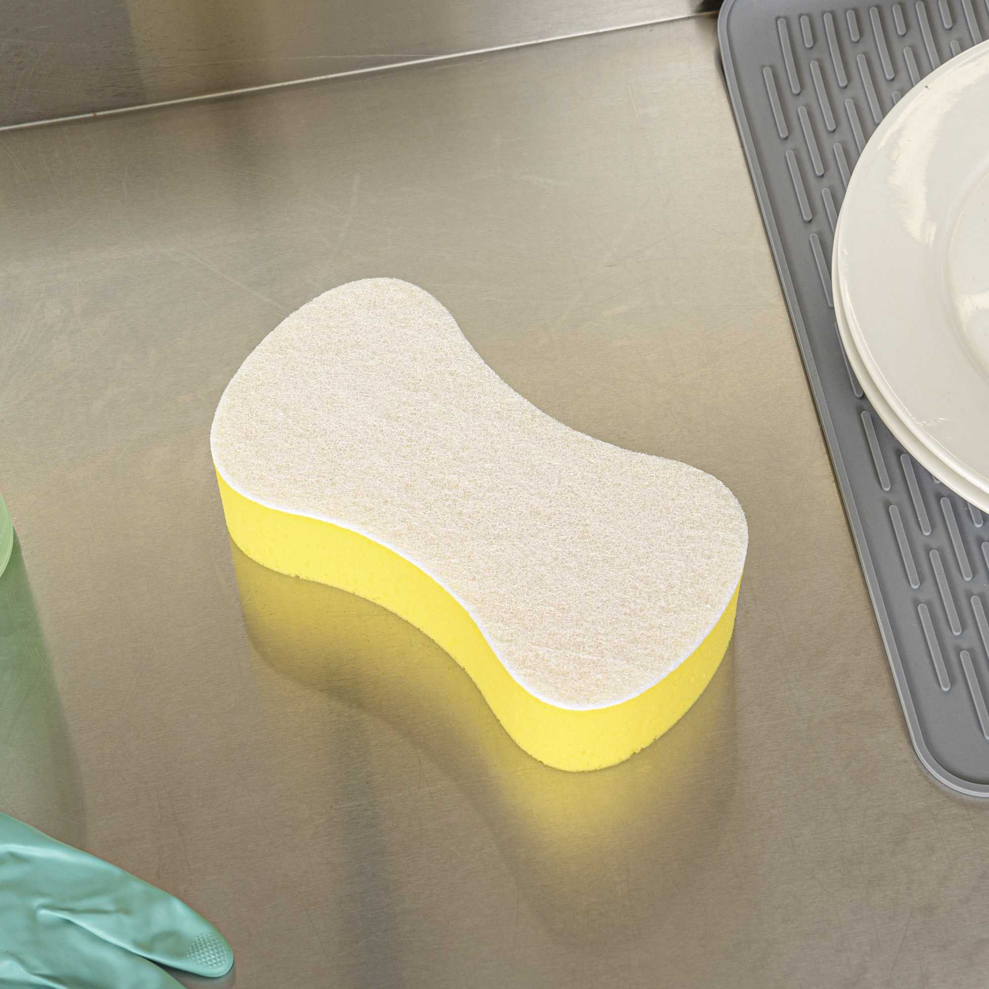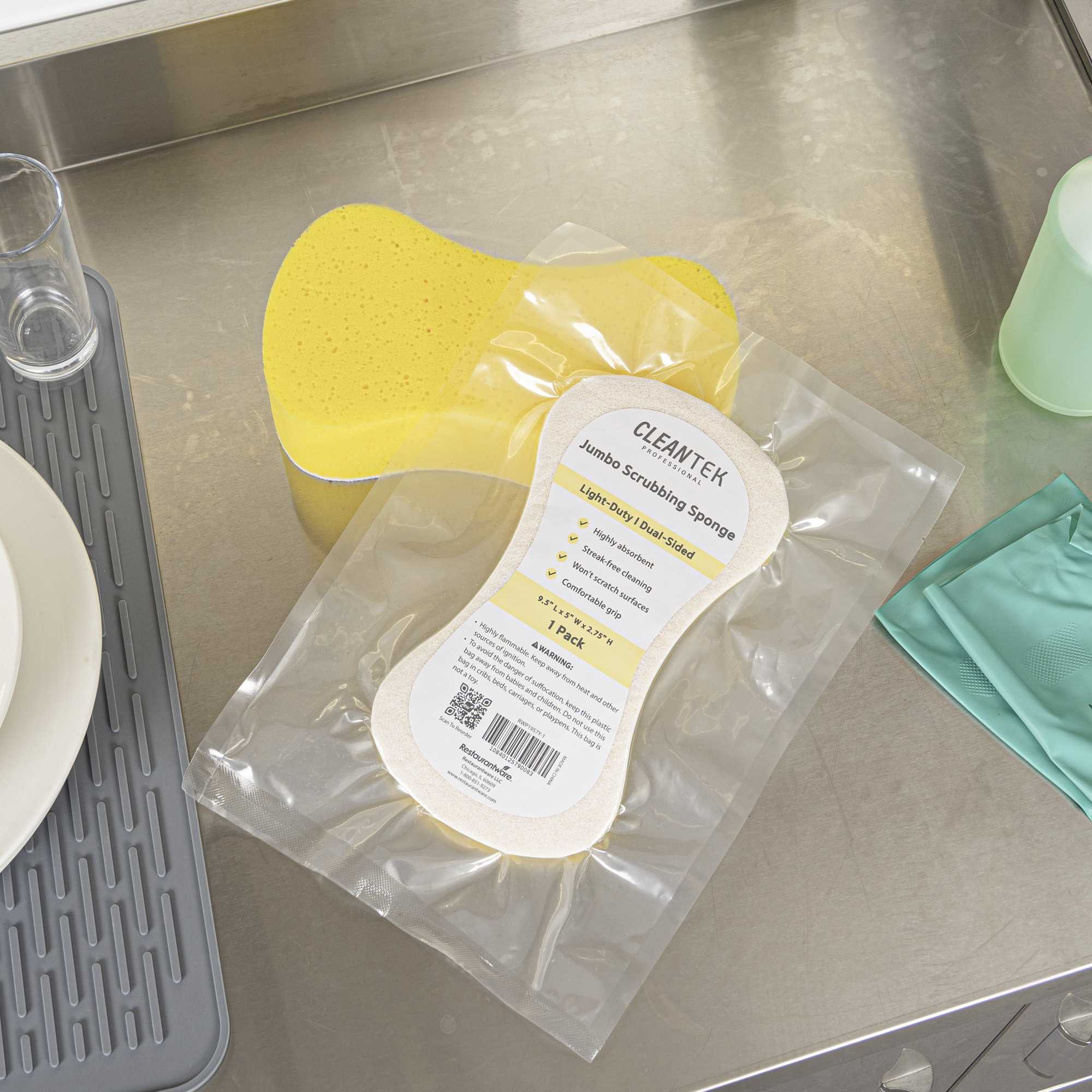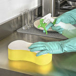 Ensure spotless results with versatile cleaning solutions. Clean Tek Professional Dual-Functionality Plastic Sponge and Scouring Pad Combo seamlessly combines a sponge and scouring pad, enabling you to efficiently clean both surfaces and corners in your commercial kitchen. Crafted from durable plastic, this commercial kitchen sponge is flexible, making it ideal for reaching hard-to-access areas like corners and crevices. Measuring 9.4 inches in length, this multi-surface scrubber covers extensive areas in fewer strokes, boosting productivity and reducing cleaning time. The dual design is perfect for scrubbing walls, railings, floors, desks, coffee makers, stairways, and countertops, making it an indispensable tool in any foodservice establishment. Elevate your cleaning routine with this essential kitchen accessory and maintain the highest standards of hygiene. Each order includes 1 Clean Tek Professional Dual-Functionality Plastic Sponge and Scouring Pad Combo.