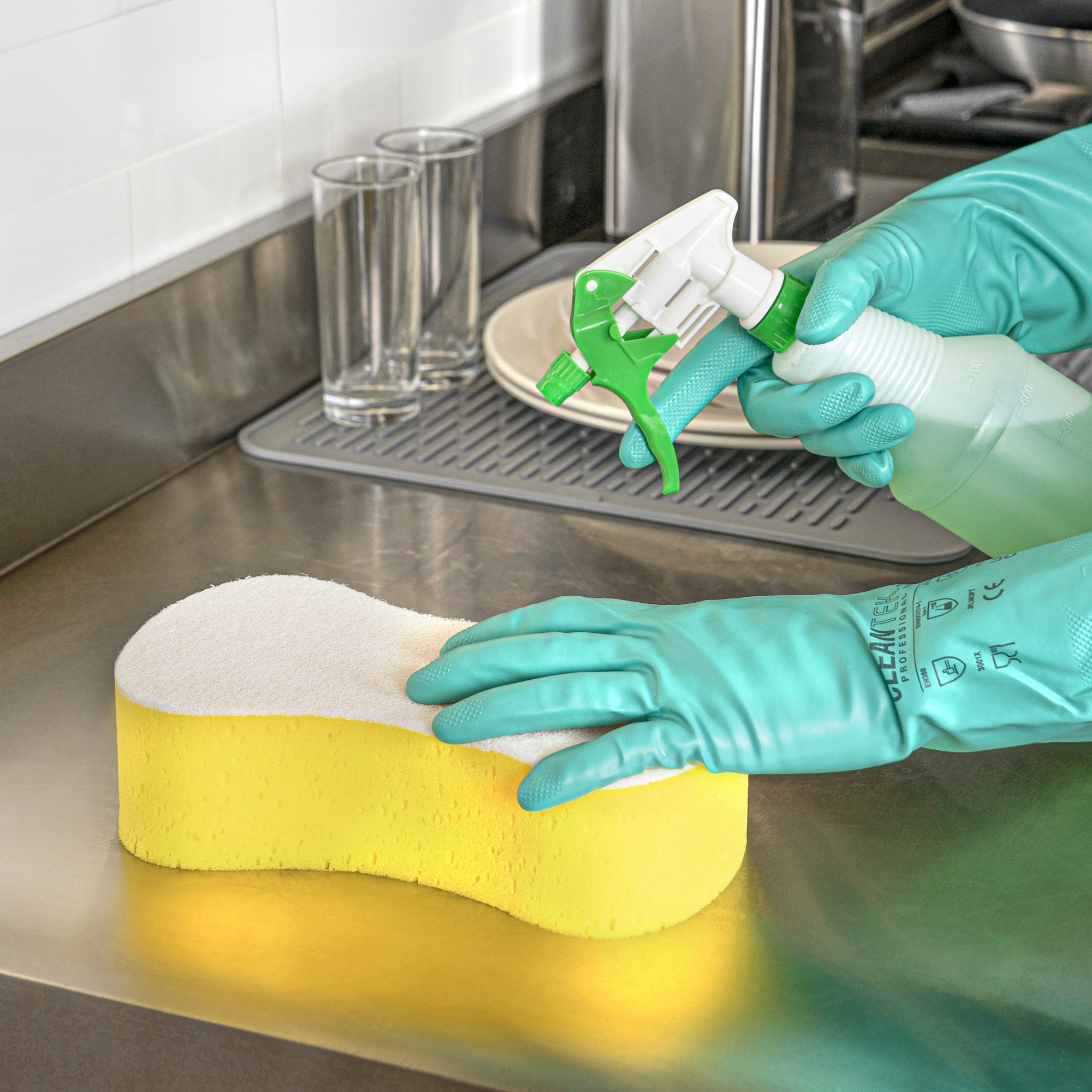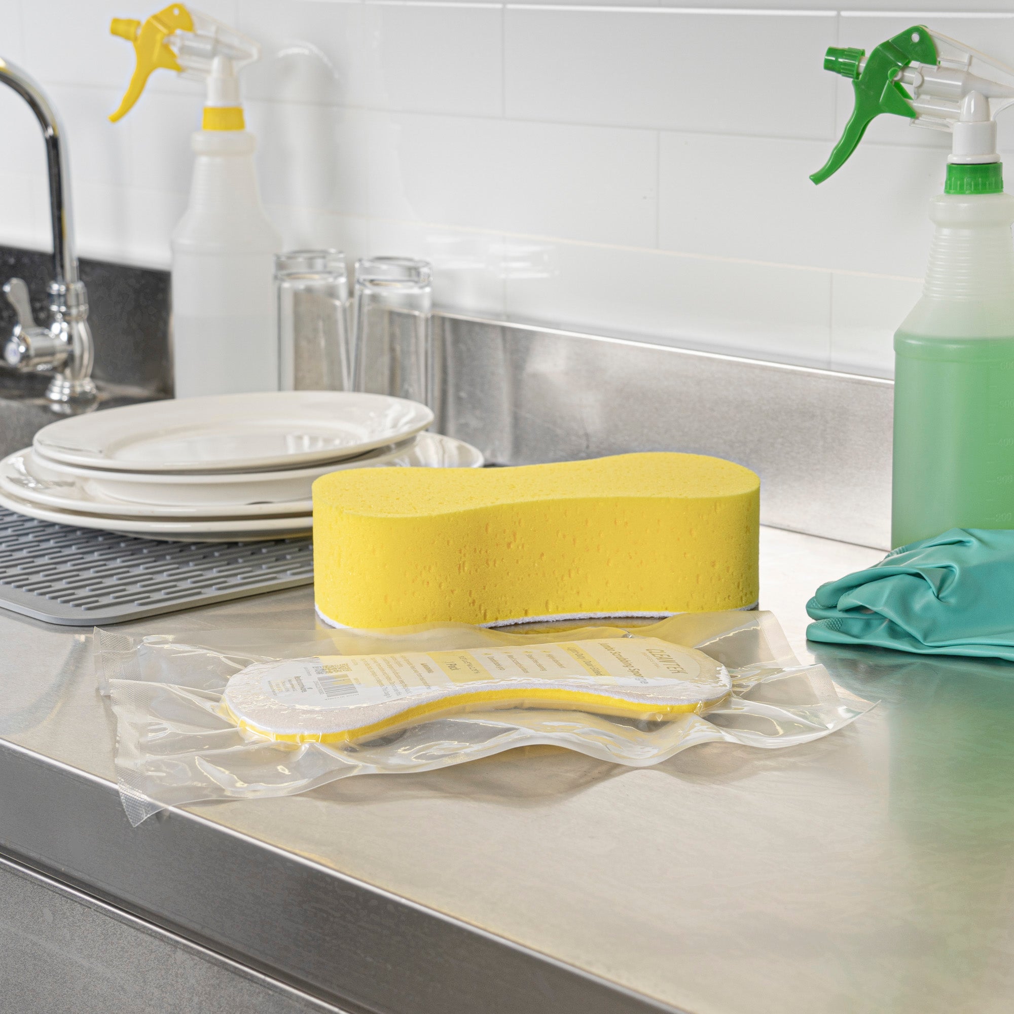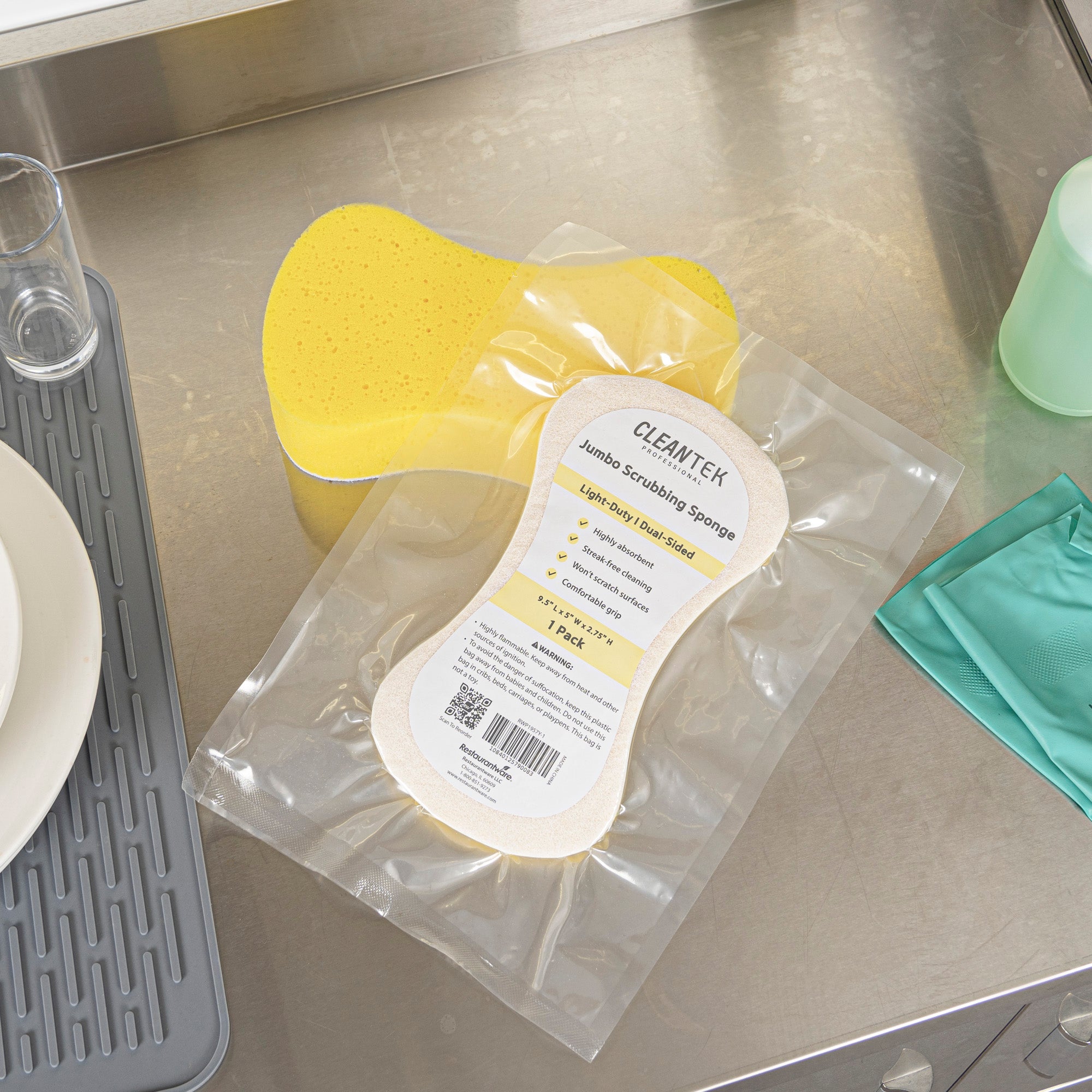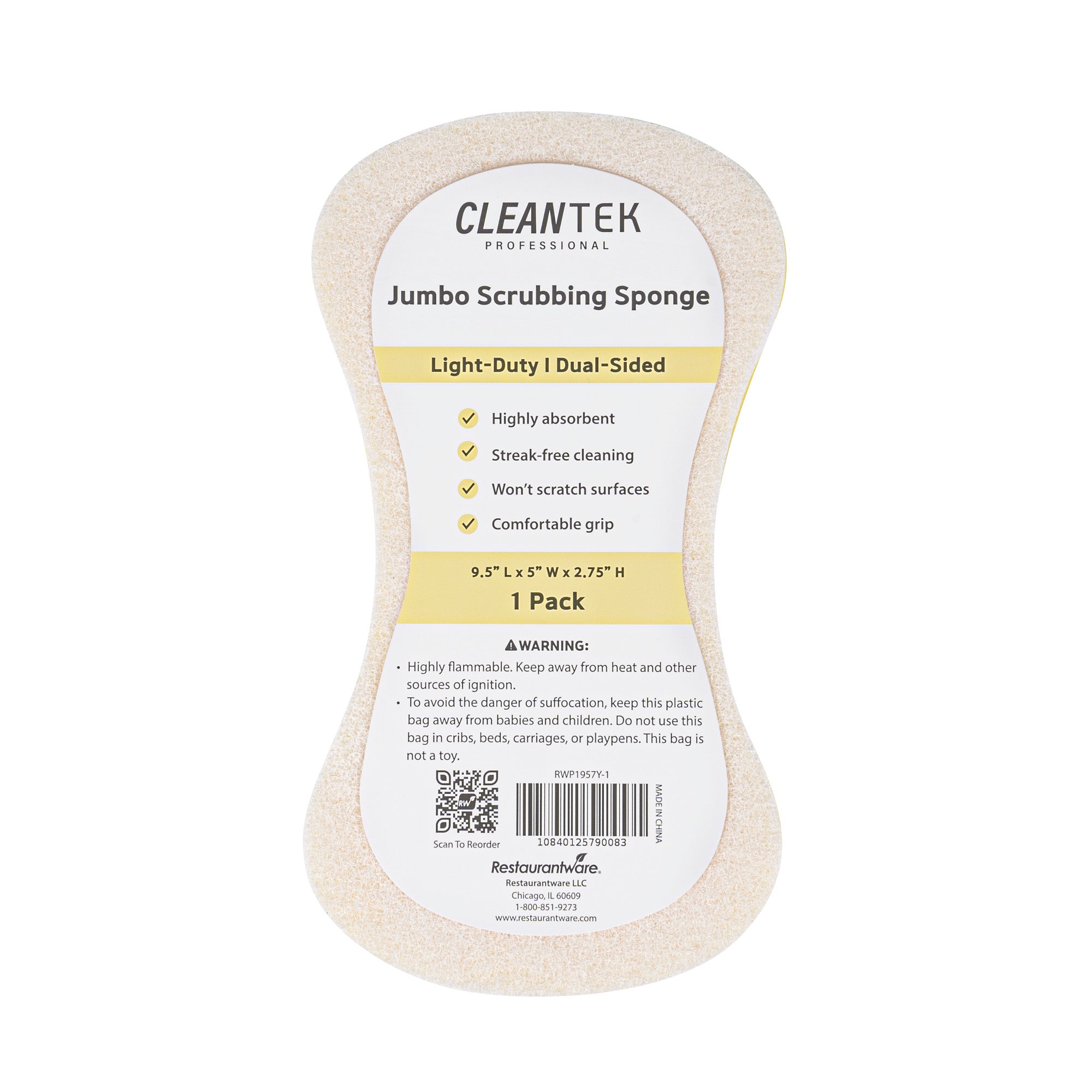 Ensure spotless results with versatile cleaning solutions. Clean Tek Professional Dual-Functionality Plastic Sponge and Scouring Pad Combo seamlessly combines a sponge and scouring pad, enabling you to efficiently clean both surfaces and corners in your commercial kitchen. Crafted from durable plastic, this commercial kitchen sponge is flexible, making it ideal for reaching hard-to-access areas like corners and crevices. Measuring 9.4 inches in length, this multi-surface scrubber covers extensive areas in fewer strokes, boosting productivity and reducing cleaning time. The dual design is perfect for scrubbing walls, railings, floors, desks, coffee makers, stairways, and countertops, making it an indispensable tool in any foodservice establishment. Elevate your cleaning routine with this essential kitchen accessory and maintain the highest standards of hygiene. Each order includes 100 Clean Tek Professional Dual-Functionality Plastic Sponge and Scouring Pad Combo.