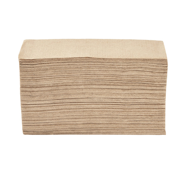 Supply your food establishment with our Clean Tek Professional Kraft M-Fold Paper Towels. Made completely from paper fibers, these paper towels are eco-friendly. These 1-ply paper towels have an embossed texture to absorb more moisture and mess with each wipe. With an M-fold design, these bathroom paper towels reduce excess consumption and product wastage since they allow only a single towel to be dispensed at a time. These M-fold paper towels are compatible with our M-fold paper towel dispensers (SKU: RWT1190B & SKU: RWT1190W). With a disposable design, these bathroom paper napkins ease cleanups after large events. These paper napkins are interlocked to make dispensing convenient, as the end of the next napkin sticks out from the dispenser once a paper towel is pulled out. Measuring 9.5 inches long by 9.25 inches wide when unfolded and 3 inches wide when folded, these kraft paper towels allow easy placement into dispensers and save space while storing. Shipped in a 4,000 count box. Dispensers are available and sold separately.