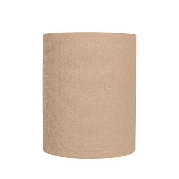 Provide your customers with a convenient way to dry their hands with our Clean Tek Professional Kraft Paper Towel Roll. Made using hardwound kraft paper, this 1-ply kitchen towel won't tear easily when wet, letting your guests use fewer paper towels per pull. Featuring an embossed texture, this disposable bathroom paper towel absorbs more water to dry hands faster. This kitchen tissue roll is non-perforated to help minimize waste by letting your patrons tear off just what they need. With a 2-inch universal core, this brown paper towel roll is compatible with our automatic paper towel dispensers (SKU: RWT1187B & SKU: RWT1188W). The 600-foot length of this hardwound paper towel roll minimizes the number of refills, making your employees' jobs simpler. Measuring 6.25 inches in diameter by 8 inches in width, this embossed paper towel is perfect to be used in kitchens, restrooms, and hand washing stations. Shipped in a 1 count box. Dispensers are available and sold separately.