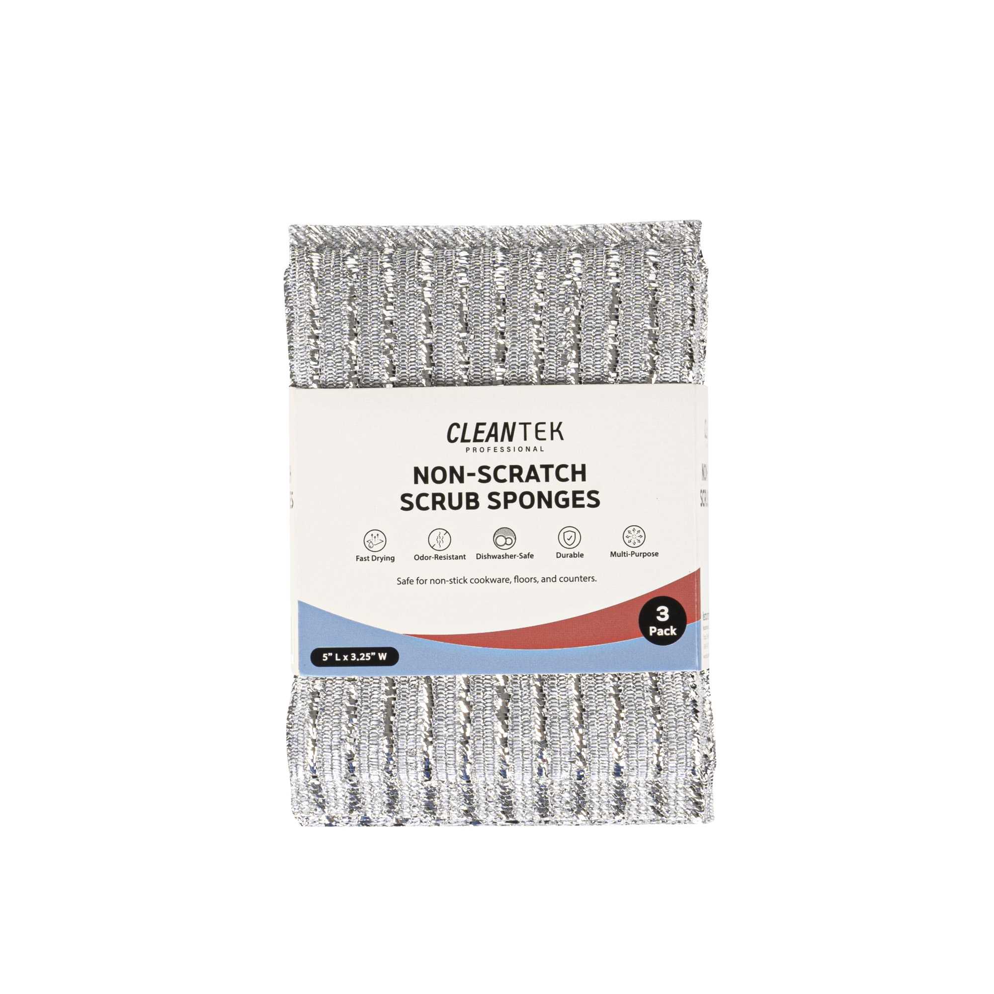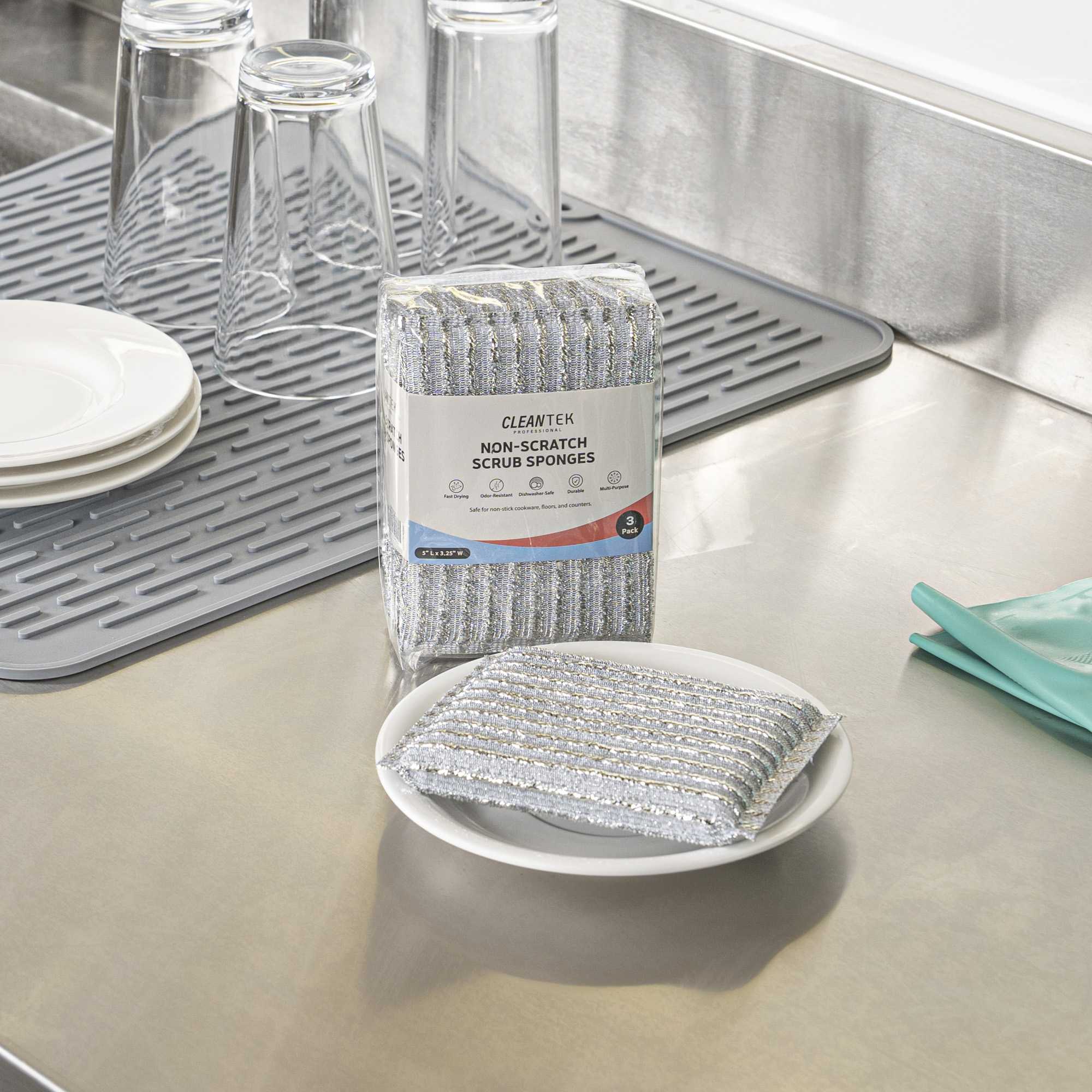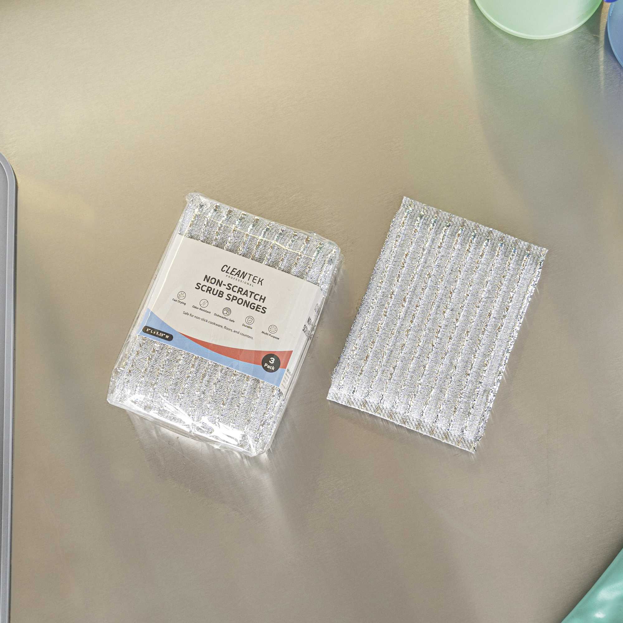 Maintain spotless surfaces effortlessly with our Clean Tek Professional Non-Scratch Kitchen Sponge. This kitchen sponge boasts a scratch-free design that preserves countertops and cookware, ensuring your kitchen remains in pristine condition. Made from durable plastic, its wear-resistant construction guarantees long-lasting performance, providing exceptional value for foodservice establishments. With dimensions of 4.9 inches by 3.3 inches by 0.6 inches, these sponges fit comfortably in your hand, offering precise control as you clean. Their good cleaning power effectively removes food residue, enhancing kitchen efficiency and sanitation. Designed not to fall off slag, these sponges prevent messy cleanups, making them an indispensable tool for chefs and kitchen staff. Enhance your cleaning routine with this reliable dish scrubber and experience the difference in your daily operations. Each order includes 3 Clean Tek Professional Non-Scratch Kitchen Sponges.