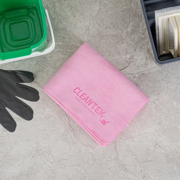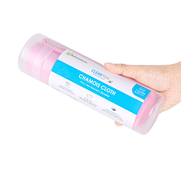 Experience superior cleaning prowess with our Clean Tek Professional Pink Chamois Cloths. Constructed from PVA microfiber, these cleaning cloths harden upon drying, deterring bacterial proliferation for a healthier environment. These microfiber rags are highly-absorbent to handle spills and mishaps with ease. Ideal for a wide range of cleaning tasks, these wiping rags are multipurpose and suitable for diverse household or commercial cleaning applications. These cleaning rags are accompanied by a storage tube to keep them damp and clean. Featuring a lint-free fabric, these chamois cloths ensure a flawless finish on every surface without leaving any unwanted streaks. The zero-pilling design of these dusting rags reduces the formation of lint balls, enhancing durability and longevity. These pink cleaning cloths are scratch-free, providing a gentle cleaning experience and safeguarding delicate surfaces from potential damage during cleaning. Machine washable, these versatile cleaning rags ensure minimal effort in maintenance and can be reused multiple times. The pink hue of these dusting cloths facilitates easy identification, avoiding mix-ups and ensuring efficiency across various dusting tasks. Measuring 25.25 inches in length by 17 inches in width, these cleaning towels provide ample scope to manage the most extensive cleaning tasks. Sold in a 20 count box.