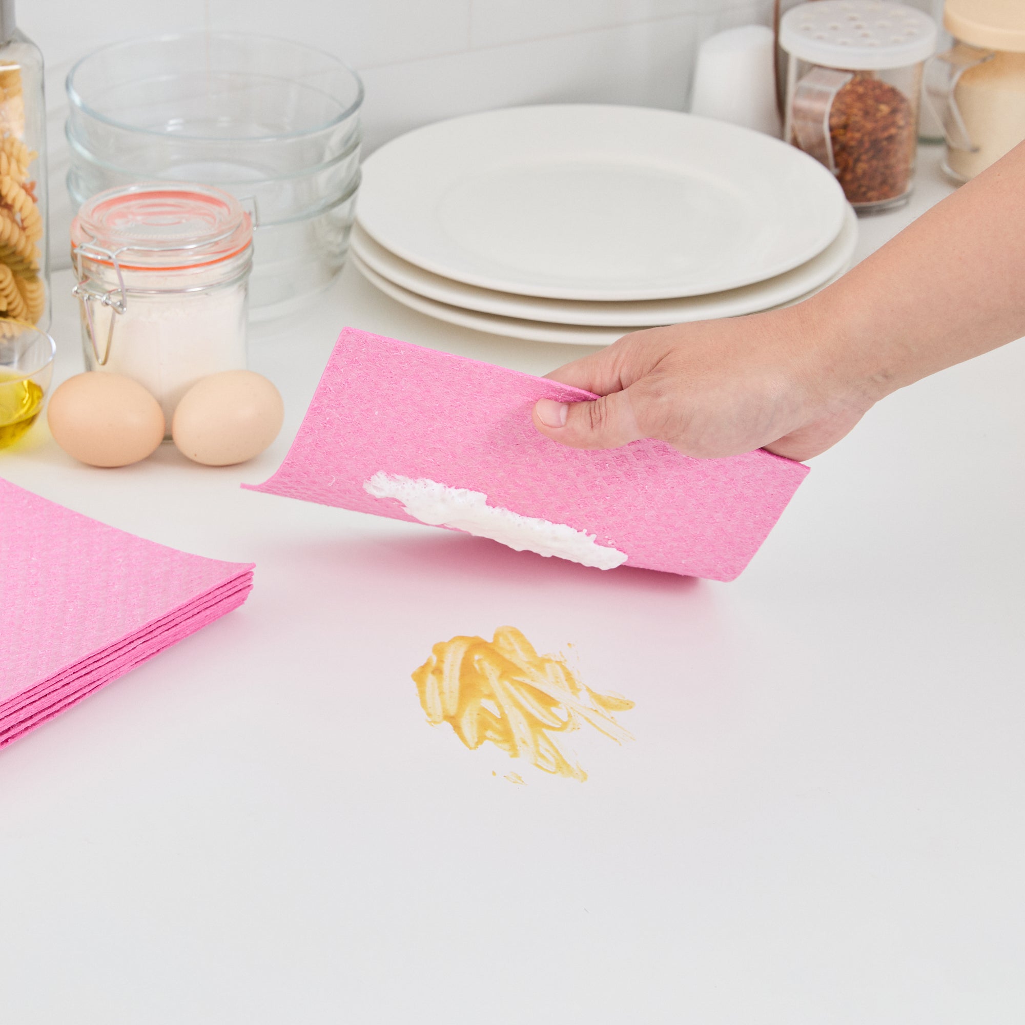 Streamline cleaning operations with our Clean Tek Professional Pink Reusable Swedish Dishcloths. Built from super absorbent cellulose, these Swedish dishcloths efficiently soak up spills and wipe surfaces clean without leaving residue. Engineered for versatility, these reusable cleaning cloths soften when wet and offer a slightly gritty texture when dry, ideal for scrubbing pots, dishes, or countertops. Crafted from biodegradable and compostable materials, these eco-conscious dish towels support sustainable cleaning practices in foodservice environments. Their durable build allows for repeated use, making them a practical alternative to disposable towels. Dishwasher-friendly and easy to sanitize, these gray dishcloths promote hygiene and reduce downtime in commercial kitchens. Measuring 6.77 inches in length by 7.68 inches in width, these cloths deliver dependable coverage with each use. Sold in a 200 count box.