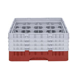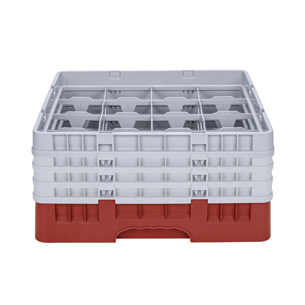 Clean Tek Professional Red Glass Rack - 16 Compartments, 1 Full Drop and 3 Half Drop Extenders - 19 3/4