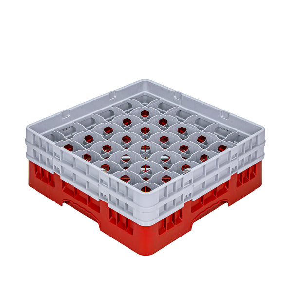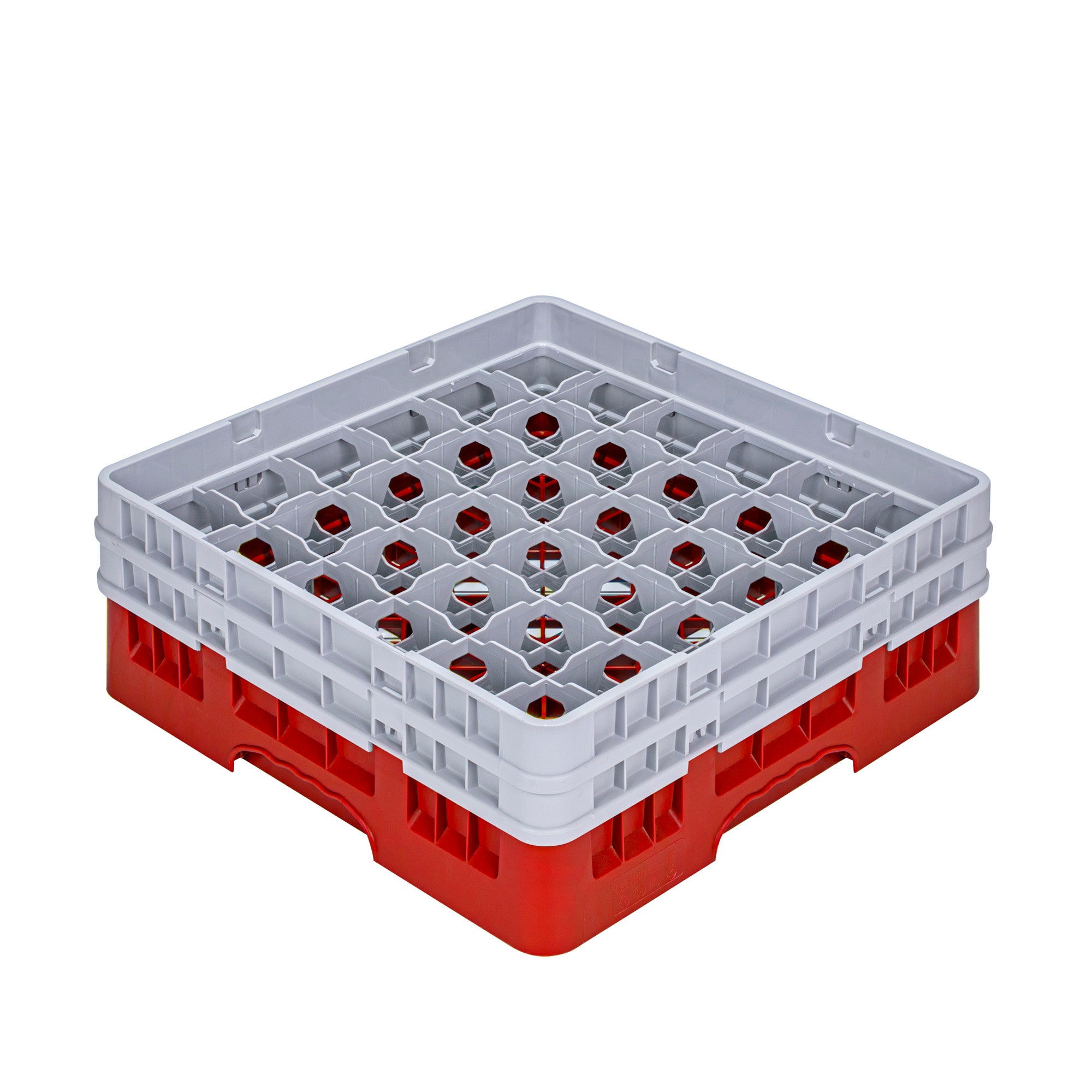 Clean Tek Professional Red Glass Rack - 36 Compartments, 1 Full Drop and 1 Half Drop Extender - 19 3/4