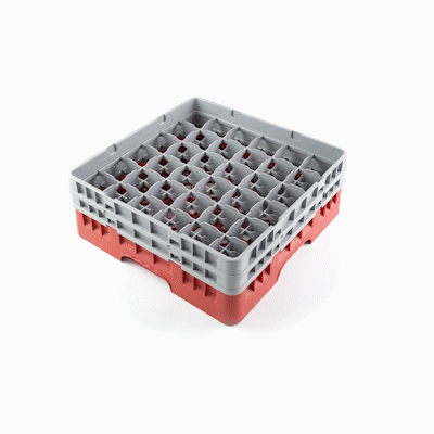 RED GLASS RACK - 36 COMPARTMENTS, 1 FULL AND 1 HALF DROP EXTENDER