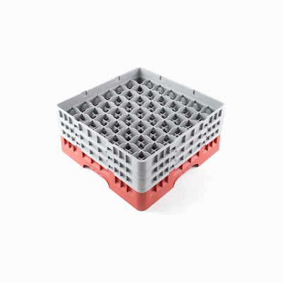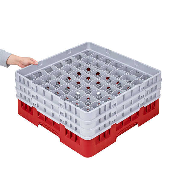 Our Clean Tek Professional Red Glass Rack provides the ultimate solution for efficient glassware storage in any busy kitchen or bar. This dishwasher rack systems feature 49 compartments, ensuring each piece of glassware is safely stored and protected during washing. Designed with a compartment rack layout, they include a full drop extender and two half drop extenders, adapting to various glass sizes and enhancing usability. The durable PP construction of this barware organizer ensures long-lasting performance and reliability in commercial settings. With an easy-to-handle design, this commercial glass rack makes transporting and organizing your glassware effortless. Open interior compartments allow for optimal water flow and thorough cleaning, while solid external walls offer stability and protection. Measuring 19.69 inches in length by 19.69 inches in width by 8.86 inches in height, this glassware storage solution fits seamlessly into most commercial dishwashers. Sold in a 1 count box.