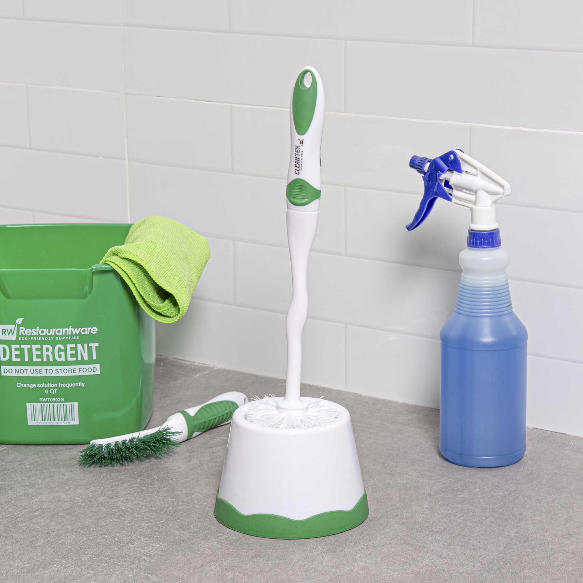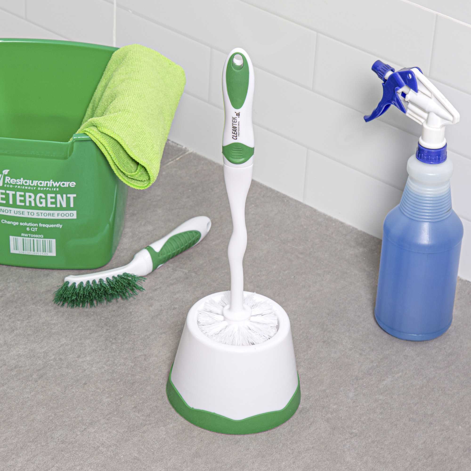 Ensure impeccable bathroom hygiene with leak-proof cleaning tools. The Clean Tek Professional Sealed Base Toilet Brush With Caddy features a sealed base that prevents leakage, maintaining cleanliness in your restroom setting. Equipped with green PP bristles, this toilet scrubber with holder provides thorough cleaning, removing stubborn stains and residue with ease. Its compact caddy design, measuring 15.7 inches in length, 4.9 inches in width, and 4.9 inches in height, saves valuable storage space, making it ideal for crowded janitorial closets or tight restroom areas. The ergonomic handle offers a comfortable grip, enhancing cleaning efficiency and reducing fatigue for janitorial staff. Crafted from plastic, this toilet brush with caddy ensures durability. Invest in this essential cleaning tool to maintain a pristine restroom with ease. Each order includes 1 Clean Tek Professional Sealed Base Toilet Brushes with Caddy.