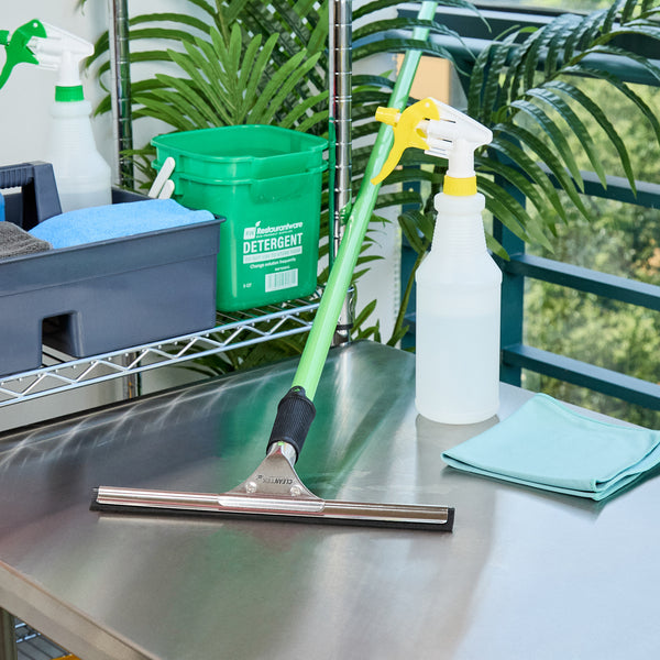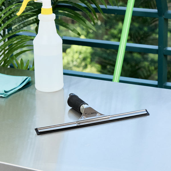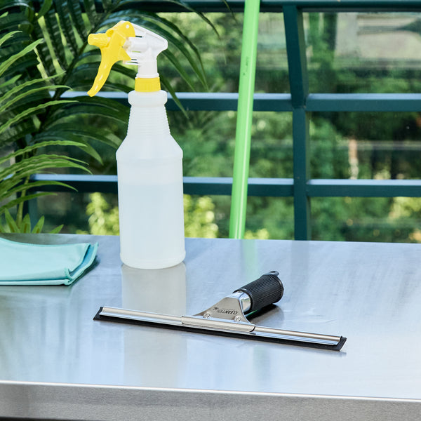 Elevate your cleaning routine with our Clean Tek Professional Stainless Steel Window Squeegee. This car squeegee features a non-slip grip rubber handle that ensures secure and comfortable control, reducing the risk of slipping during use. With a premium rubber blade, this commercial squeegee offers a smooth, streak-free cleaning experience, efficiently removing water and residue from glass surfaces. Built with a durable stainless steel frame, this window squeegee provides long-lasting performance. Perfect for various applications, this window washing squeegee works wonders on vehicle windshields, leaving them spotless and clear. Measuring 11.81 inches in length by 5.91 inches in width by 1.18 inches in height, this windshield squeegee is compact yet highly effective. Sold in a 1 count box.