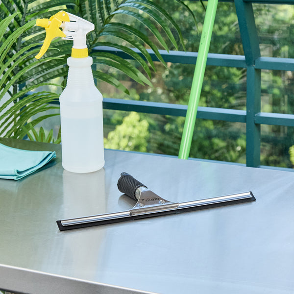 STAINLESS STEEL WINDOW SQUEEGEE - WITH BLACK RUBBER GRIP