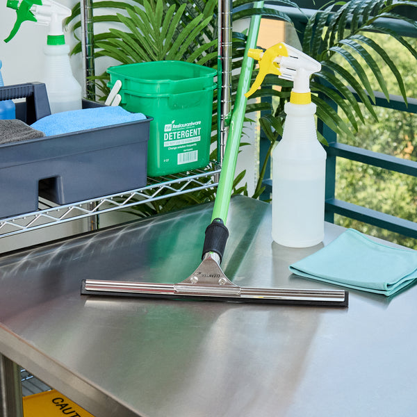 Enhance your cleaning routine with our Clean Tek Professional Stainless Steel Window Squeegee. The non-slip grip rubber handle of this car squeegee ensures secure and comfortable control, minimizing the risk of slipping during use. With a premium rubber blade, this window washing squeegee delivers a streak-free cleaning experience, efficiently removing water and residue from glass surfaces. The robust stainless steel frame of this commercial squeegee offers outstanding durability and ensures long-lasting performance. Perfect for various applications, this window squeegee is ideal for maintaining crystal-clear windows and windshields. Measuring 13.78 inches in length by 5.91 inches in width by 1.18 inches in height, this windshield squeegee is conveniently sized for easy handling and storage. Sold in a 1 count box.