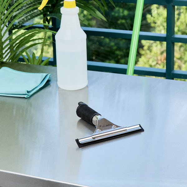 STAINLESS STEEL WINDOW SQUEEGEE - WITH BLACK RUBBER GRIP