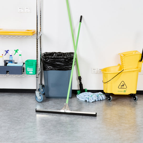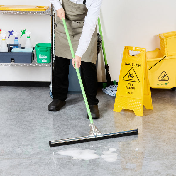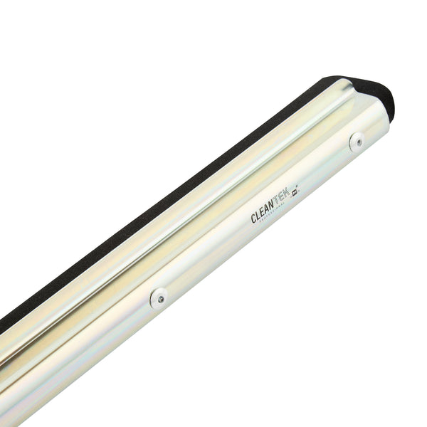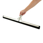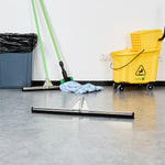 Optimize your cleaning routine with our Clean Tek Professional Steel Heavy-Duty Floor Squeegee. Pair this large floor squeegee with our compatible handle (SKU: RWT1759G) for a complete cleaning solution that offers efficient and comfortable use. The double rubber blade design of this floor squeegee effectively accommodates variations in surface, allowing for efficient water and debris removal along edges and corners. This shower squeegee removes water and soap scum effortlessly, leaving surfaces without any streaks. The robust steel frame of this commercial floor squeegee provides exceptional durability, designed to withstand heavy use and avoid bending or warping over time. Measuring 29.92 inches in length by 5.51 inches in width by 1.77 inches in height, this bathroom squeegee is ideal for extensive cleaning tasks. Sold in a 1 count box. Handle is available and sold separately.