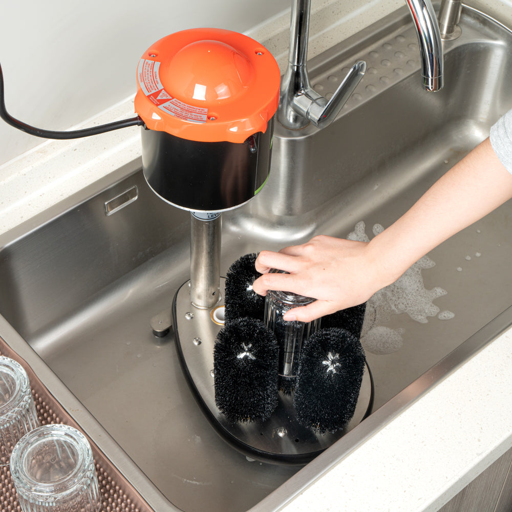 Designed to quickly wash many glasses, this automatic cup washer for sinks is perfect for cleaning cups after big events. Perfect for bars or restaurants.