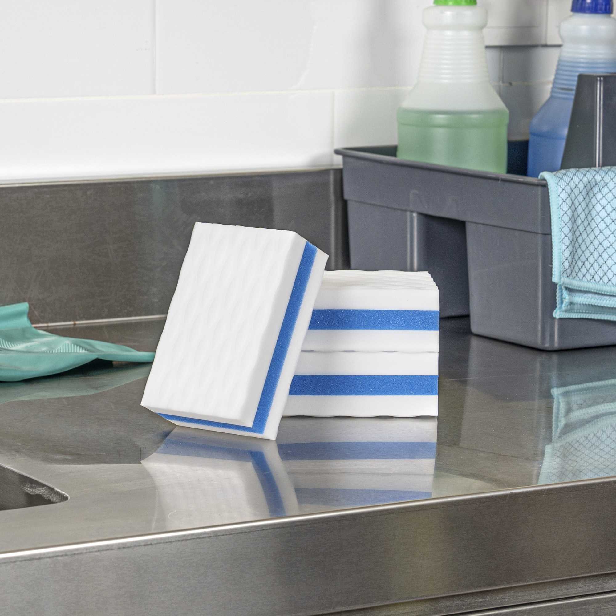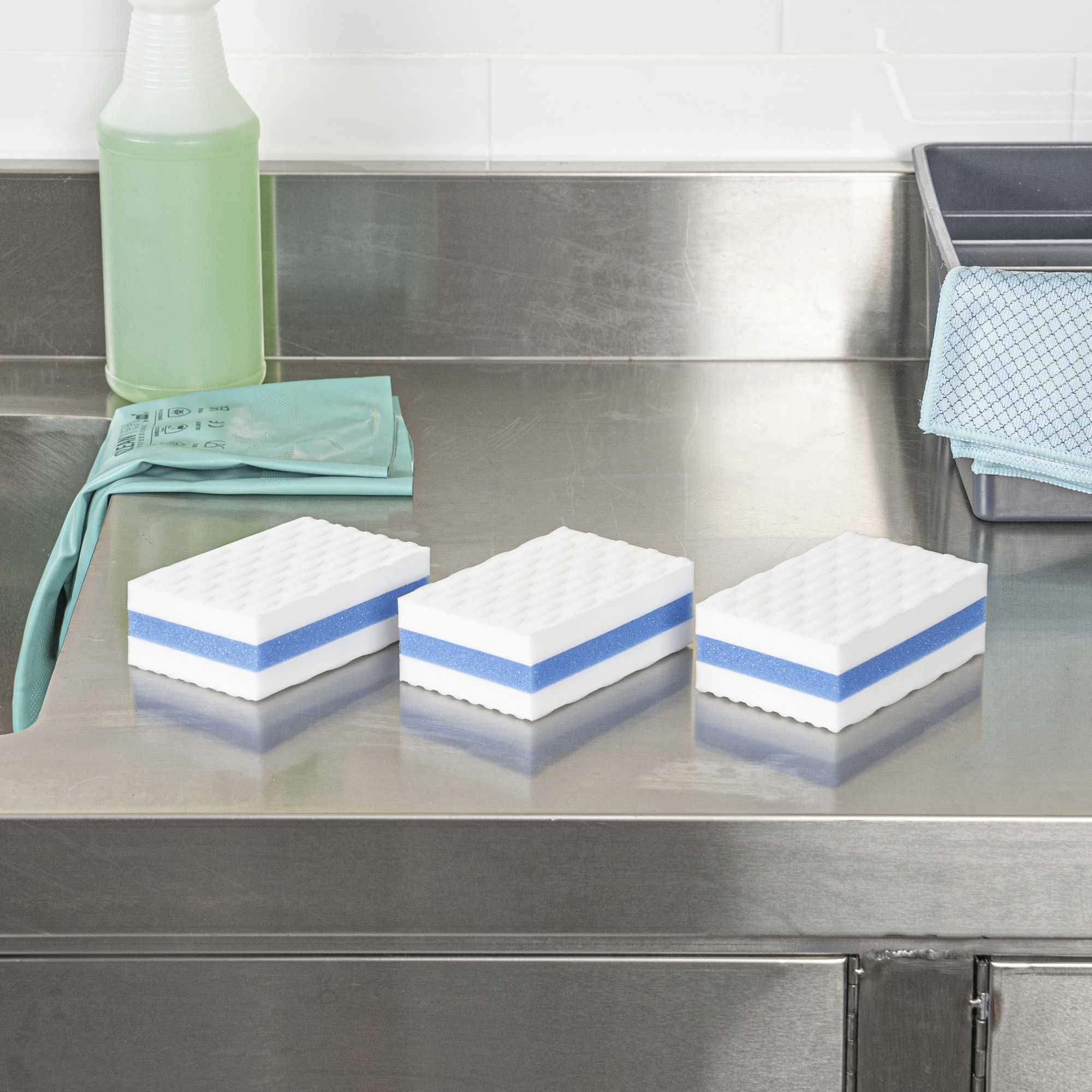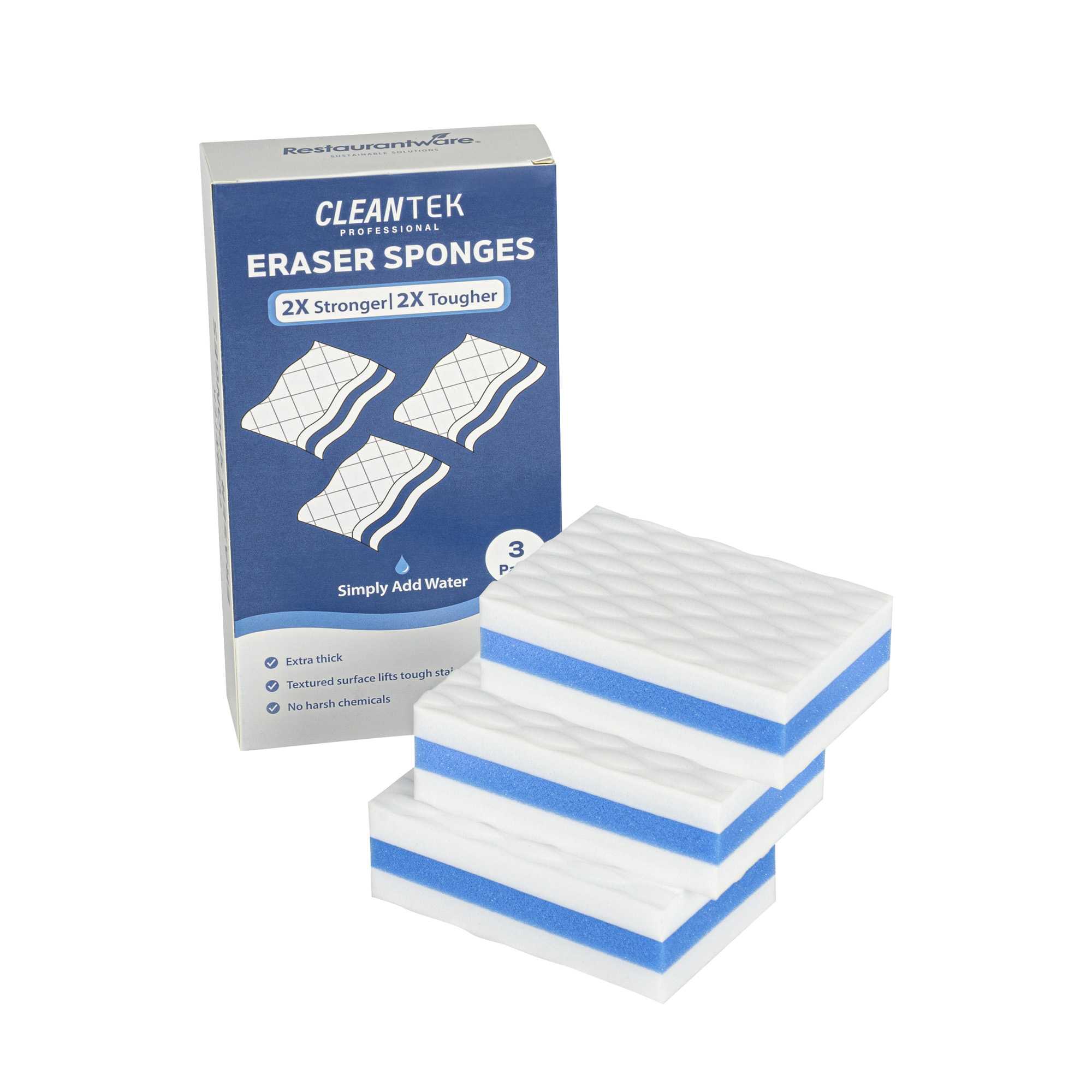 Effortlessly tackle stubborn stains with the Clean Tek Professional Stain-Remover Sponge Eraser. This sponge eraser is designed to eliminate tough stains with ease, ensuring your cleaning process is swift and effective. Made from durable plastic, this versatile melamine cleaning sponge is perfect for use on walls, floors, doors, baseboards, and appliances, offering unmatched flexibility in your cleaning routine. Its compact size, measuring 4.33 inches in length, fits into tight spaces, making it an ideal stain remover sponge for efficient use in any commercial kitchen or dining setting. Enhance the cleanliness and appearance of your establishment with this indispensable cleaning tool. Each order includes 3 Clean Tek Professional Stain-Remover Sponge Erasers.