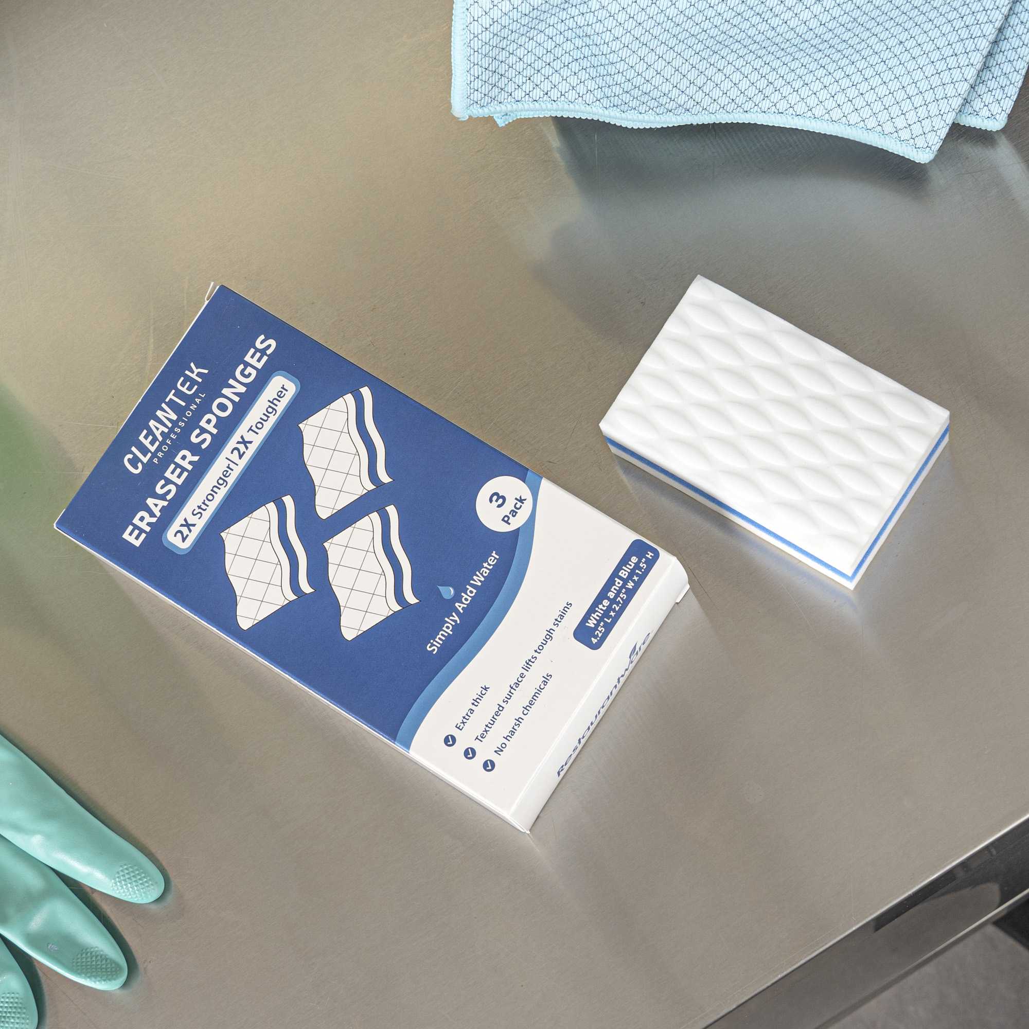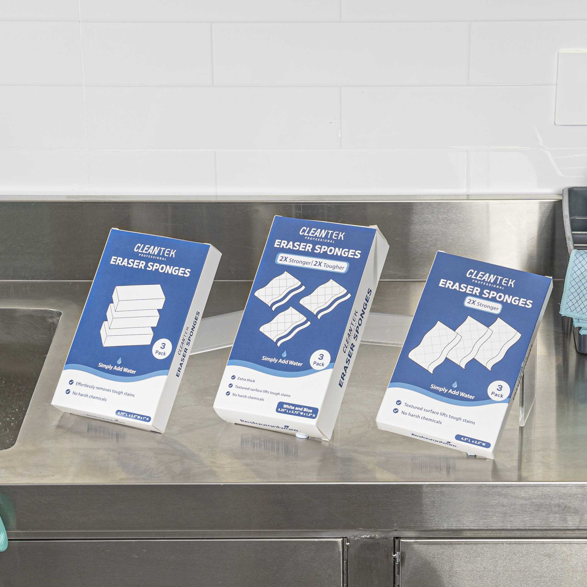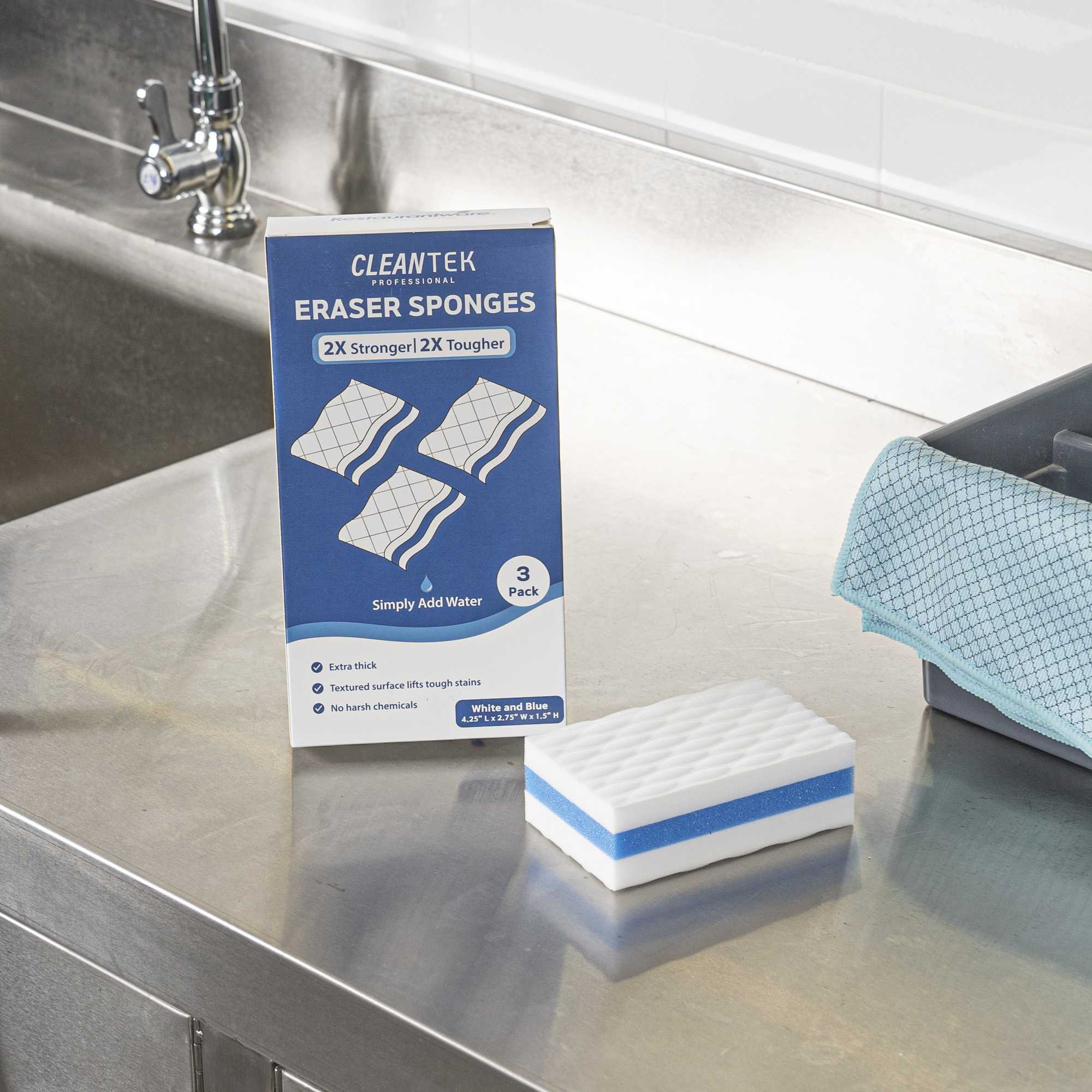 Effortlessly tackle stubborn stains with the Clean Tek Professional Stain-Remover Sponge Eraser. This sponge eraser is designed to eliminate tough stains with ease, ensuring your cleaning process is swift and effective. Made from durable plastic, this versatile melamine cleaning sponge is perfect for use on walls, floors, doors, baseboards, and appliances, offering unmatched flexibility in your cleaning routine. Its compact size, measuring 4.33 inches in length, fits into tight spaces, making it an ideal stain remover sponge for efficient use in any commercial kitchen or dining setting. Enhance the cleanliness and appearance of your establishment with this indispensable cleaning tool. Each order includes 3 Clean Tek Professional Stain-Remover Sponge Erasers.