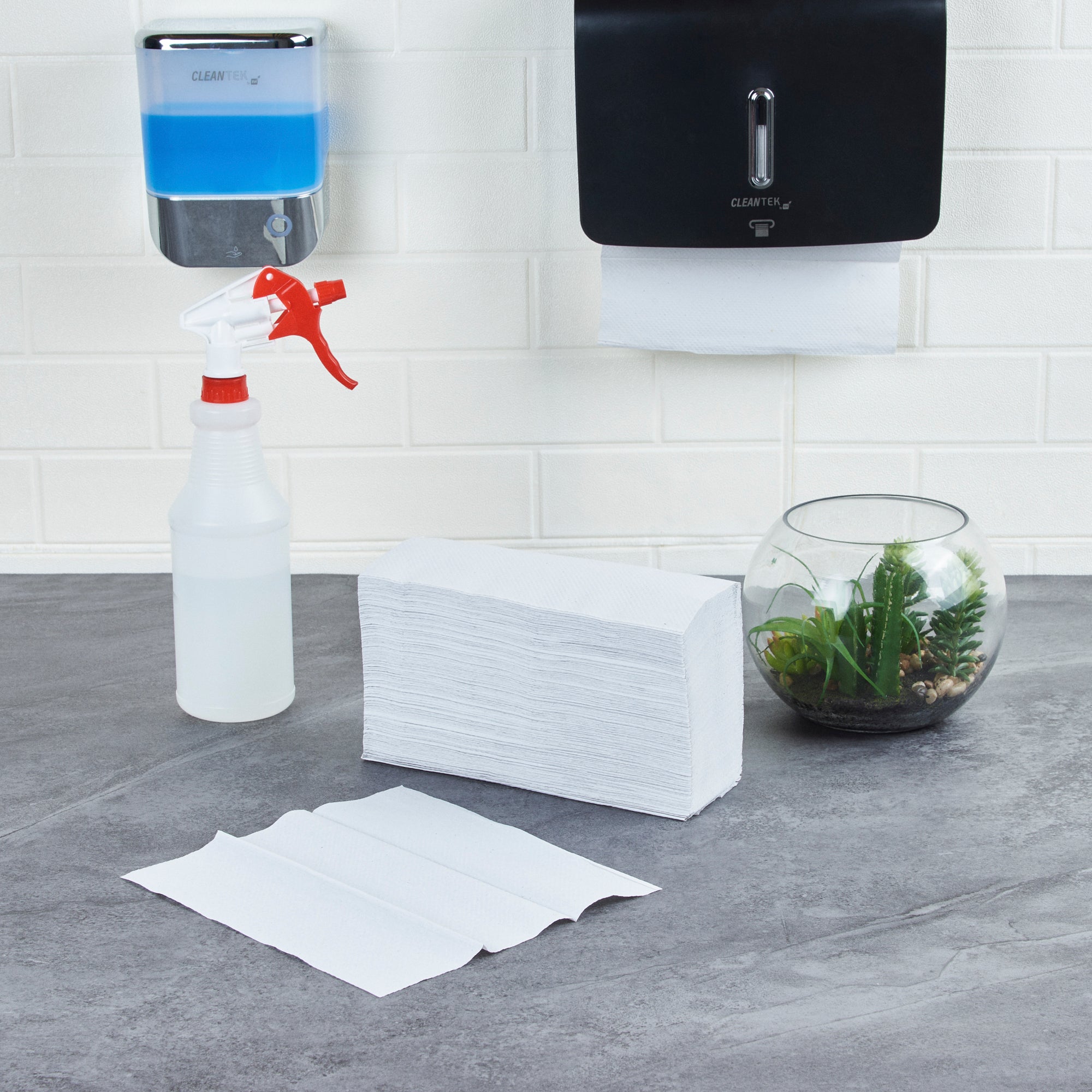 Enhance efficiency and sustainability in high-traffic areas. Clean Tek Professional Waste-Reducing Multifold Paper Towels feature an M-fold mechanism that dispenses one napkin at a time, minimizing waste and reducing napkin usage. With an embossed texture, these hand drying towels offer superior absorption, ensuring quick and effective hand drying, which is essential for maintaining hygiene standards. The 1-ply design balances strength and absorbency, providing a cost-effective solution without compromising on performance. Measuring 9.5 inches by 9.25 inches, these towel dispenser refills provide ample coverage for drying hands or cleaning surfaces efficiently. Reinforce your commitment to quality and sustainability by incorporating these multifold paper towels into your operations. Each order includes 250 Clean Tek Professional Waste-Reducing Multifold Paper Towels.