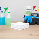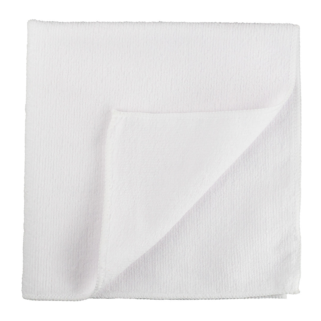 Help improve sanitation practices at your foodservice establishment with our Clean Tek Professional White Microfiber Cleaning Cloths. With a white finish, these cleaning cloths can be used to clean specific surfaces or equipment at your foodservice establishment and minimize cross-contamination. Made from a blend of polyester microfibers, these non-abrasive cleaning rags allow you to scrub surfaces without scratching coatings or leaving unsightly lint behind. These absorbent cleaning cloths can hold up to 4 times more moisture than traditional cotton cloths, providing you with an efficient way to soak up spills on bar tops or wipe down dining tables. Conveniently machine-washable, these soft cleaning towels can be easily washed after use and offer a simple way for you to reduce your business's waste. These microfiber cloths are perfect for safely polishing delicate surfaces or drinking glasses at your bar, restaurant, or cafe. Each cleaning cloth measures 16 inches long by 16 inches wide. Sold in a 10 count box.
