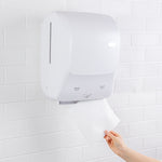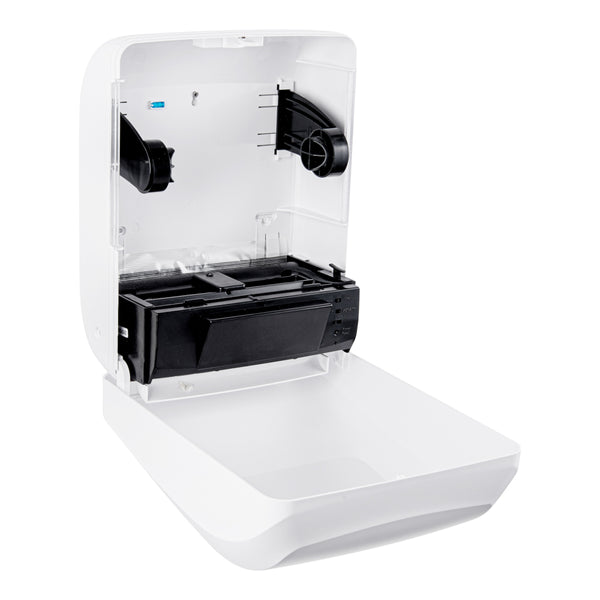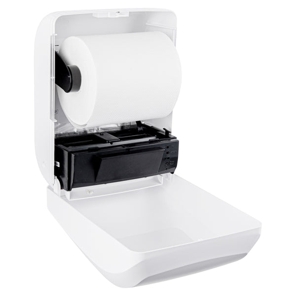 WHITE PLASTIC 8" HANDS-FREE AUTOCUT PAPER TOWEL ROLL DISPENSER