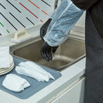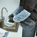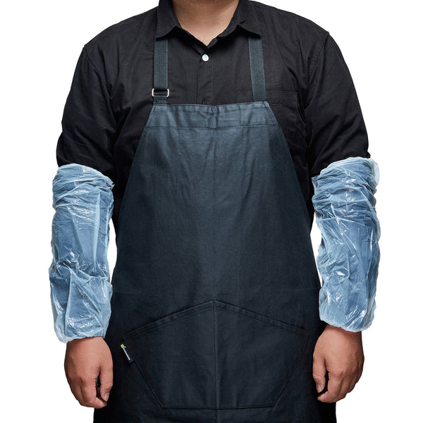 Keep your patrons' arms safe in the kitchen using our Clean Tek Professional White Plastic Disposable Arm Sleeve Covers. Constructed from premium plastic, these oversleeves are impervious to water, cleaning products, or other liquids, avoiding accidents. Equipped with elastic bands, these plastic sleeve covers provide a snug fit for all sizes and won't loosen during use. Plus, these arm protection covers are easy to slip on and off to give employees a quick and hassle-free way of getting ready for the day. The lightweight design of these high-quality sleeve covers makes them comfortable to use during busy work hours and won't hinder employees' movement. These recyclable oversleeves speed up your cleaning process and boost the sanitation standards at your bakery, restaurant, or food catering service. Featuring a white finish, these protective arm covers enhance the professional look of your food establishment's dress code. These disposable arm sleeve covers measure 16 inches long by 8 inches wide. Sold in a 100 count box.