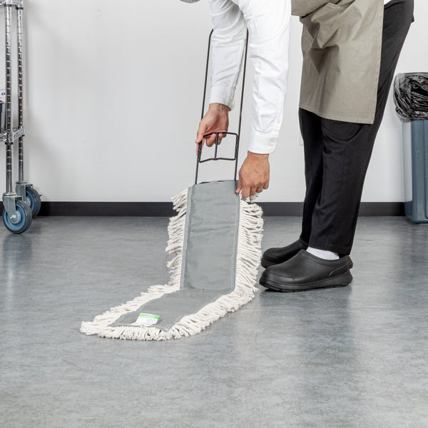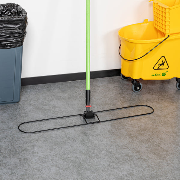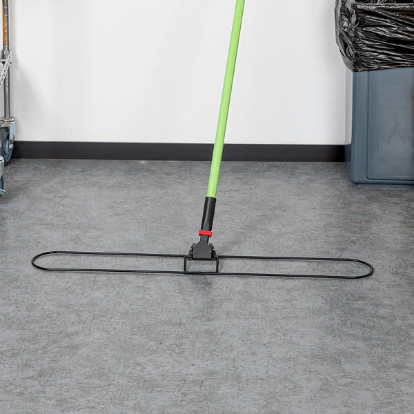 Ensure your establishment sparkles with our Clean Tek Professional Wire Swivel Snap Mop Frame. Pair this dust mop frame with its compatible dry mop pad and handle to create an efficient and effective cleaning system. This dust mop head frame allows for quick and easy fastening of the handle, ensuring a secure and efficient cleaning experience. With its slim and flat design, this dry mop frame fits underneath furniture and equipment effortlessly. Crafted from durable iron, this mop head frame does not bend or warp with frequent use, making it ideal for long-lasting performance. Measuring 35.83 inches in length by 5 inches in width, this flat mop frame offers optimal reach to all corners of your establishment. Sold in a 1 count box. Handle and mop pads are available and sold separately.