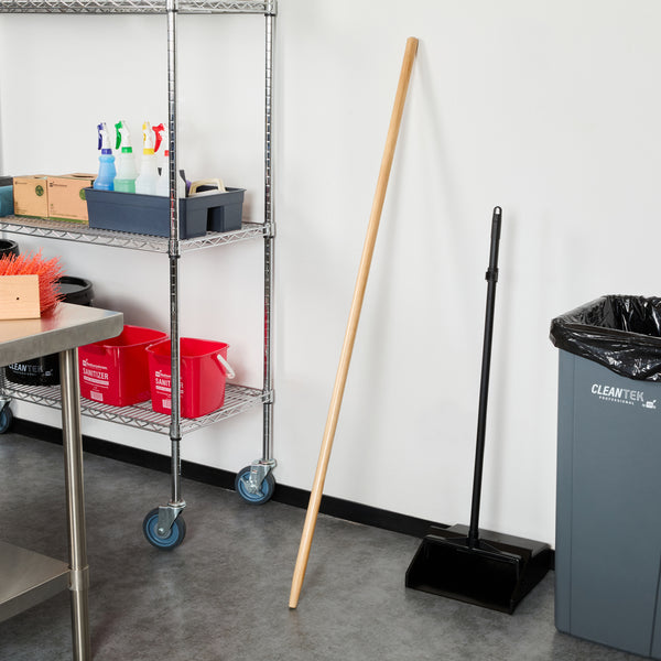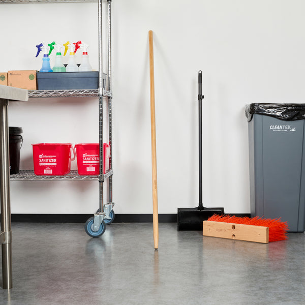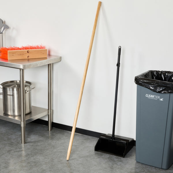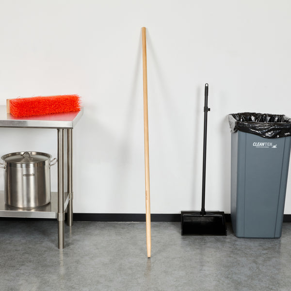 Effortlessly enhance your cleaning tasks with our Clean Tek Professional Wood Tapered Push Broom Handle. This wooden broom stick pairs perfectly with our compatible broom heads (SKU: RWT1863T and RWT1887Y) to ensure optimal performance. Featuring a precision-cut tapered tip, this broom handle provides a secure fit and reduces wobbling during use. The ergonomic design of this handle for push broom enhances comfort and minimizes hand strain, allowing for extended use and improved control during cleaning tasks. With a 59-inch length, this wooden handle offers extended reach and optimal maneuverability, making it easier to clean large areas and access hard-to-reach spots with ease. Made from durable wood, this push broom handle is built to withstand the rigors of daily use in the foodservice industry. Measuring 59.06 inches in length, this broom handle ensures you have the perfect tool for maintaining a clean and efficient workspace. Sold in a 1 count box. Broom heads are available and sold separately.