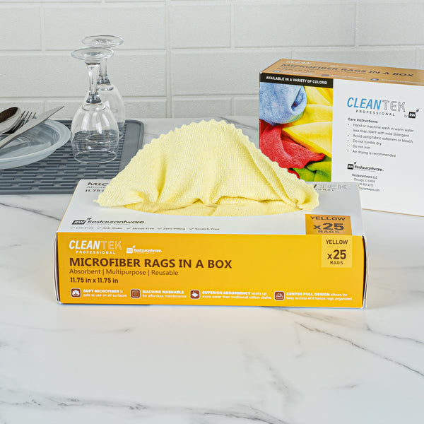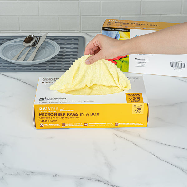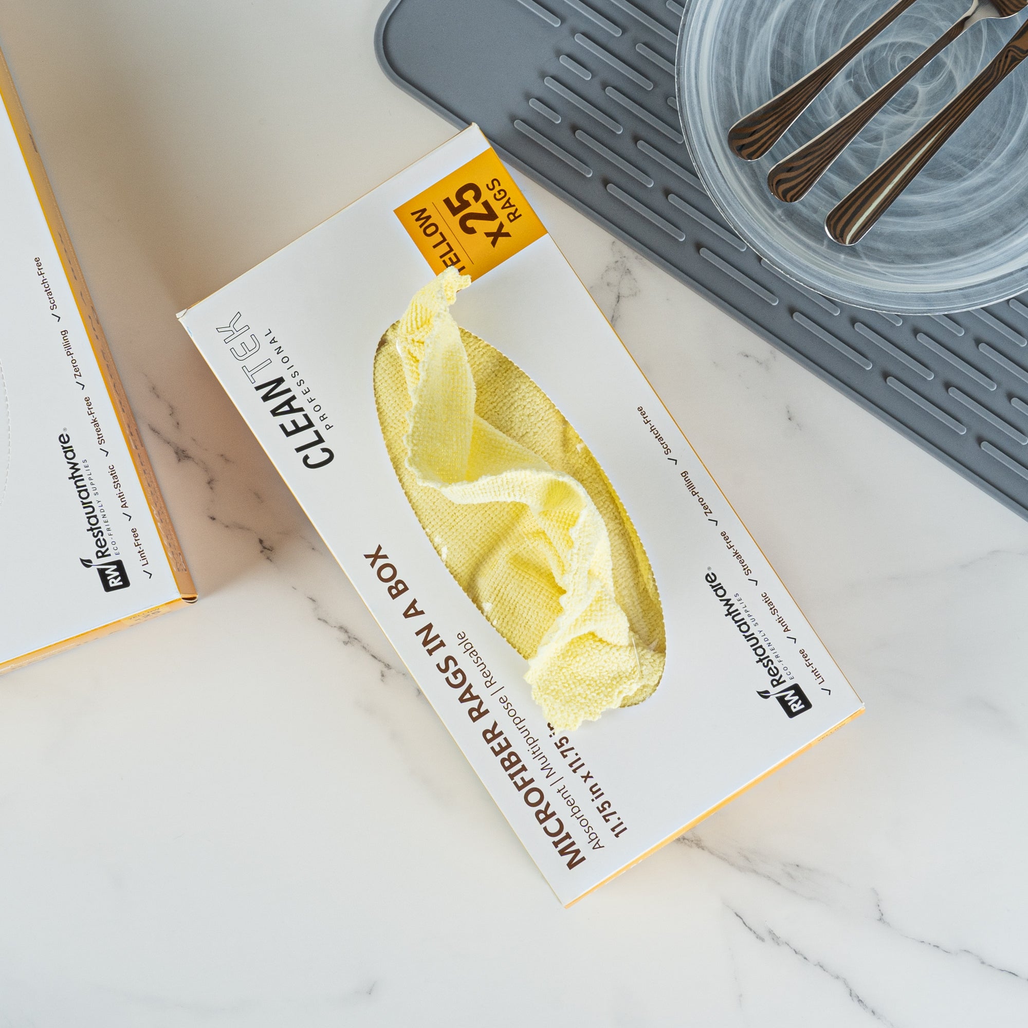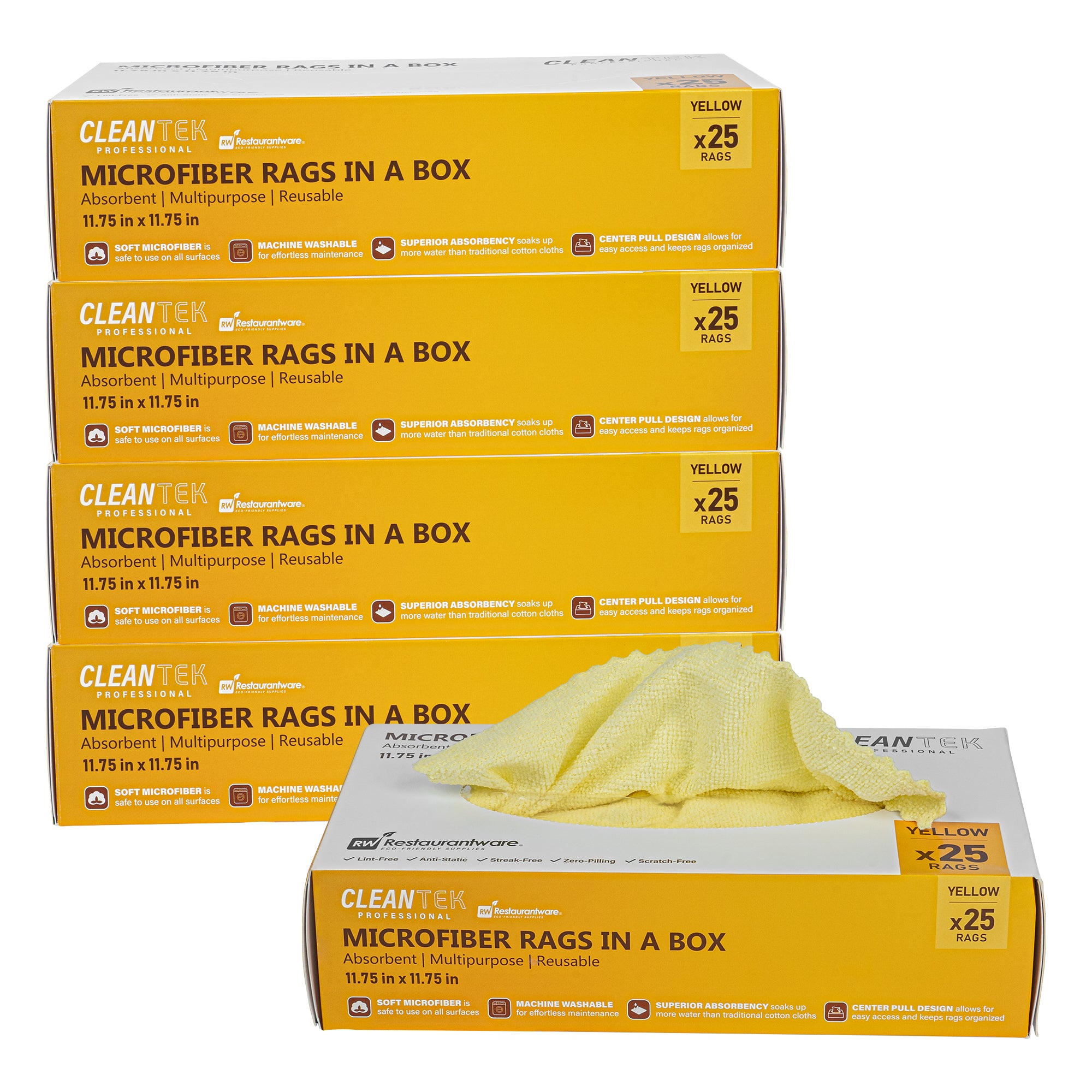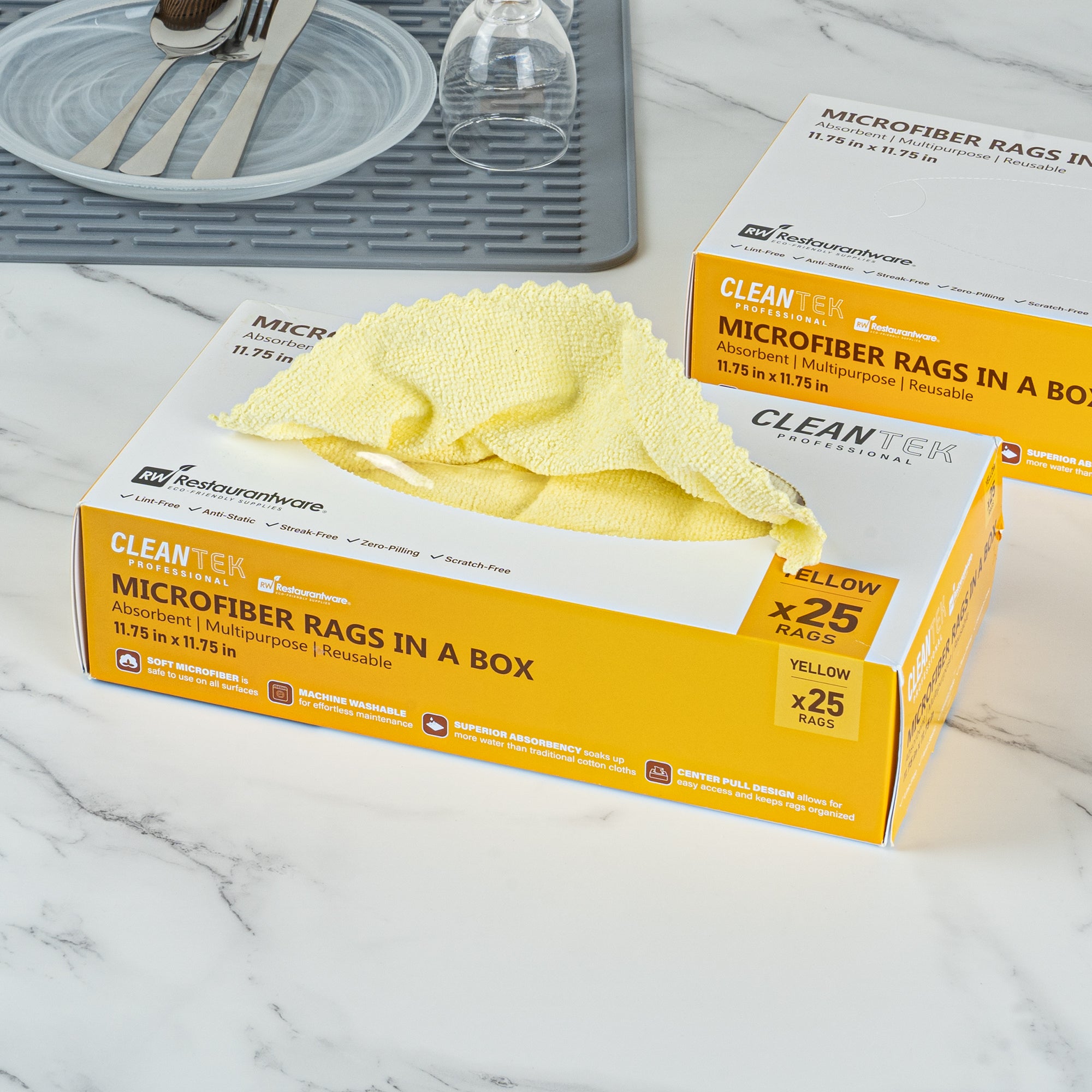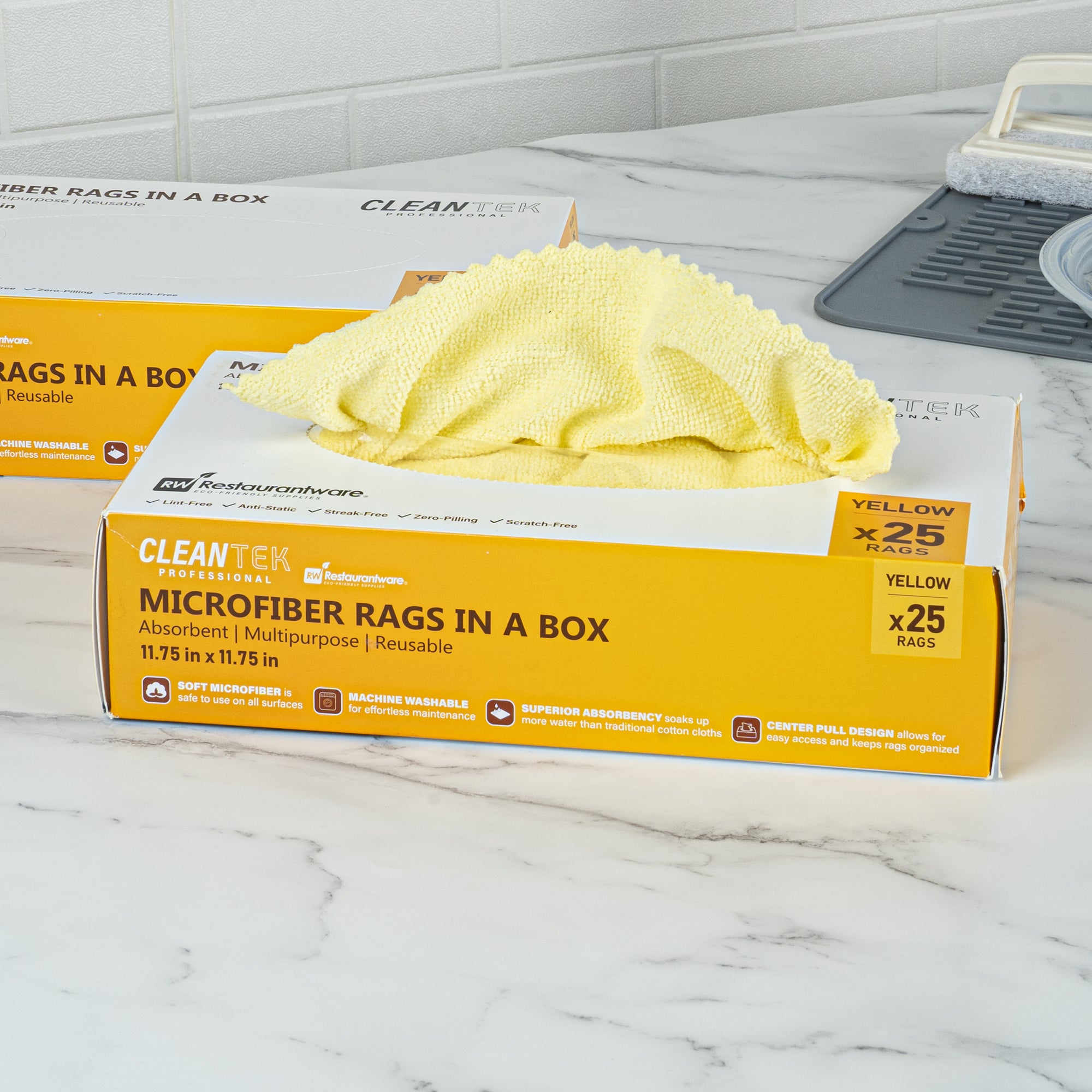 Enhance your cleaning routine with our Clean Tek Professional Yellow Microfiber Rags In A Box. Packaged in a handy dispenser box, these microfiber cloths allow for quick and easy access, streamlining your cleaning tasks. Crafted from a blend of polyester and polyamide, these cleaning cloths are durable and ensure a streak-free finish on windows and other glass surfaces. To tackle spills and dry surfaces effortlessly, these car drying towels are highly absorbent. Ideal for dusting, wiping surfaces, polishing, and absorbing spills, these multipurpose cleaning rags are versatile and efficient. Designed with seamless wavy edges, these microfiber cleaning cloths offer scratch-free cleaning, ideal for delicate surfaces. With a yellow finish, these microfiber rags are easily identifiable, reducing mix-ups and ensuring efficient task management. Measuring 11.81 inches in length by 11.81 inches in width, these drying cloths provide ample cleaning surface. Each order includes 25 rags.