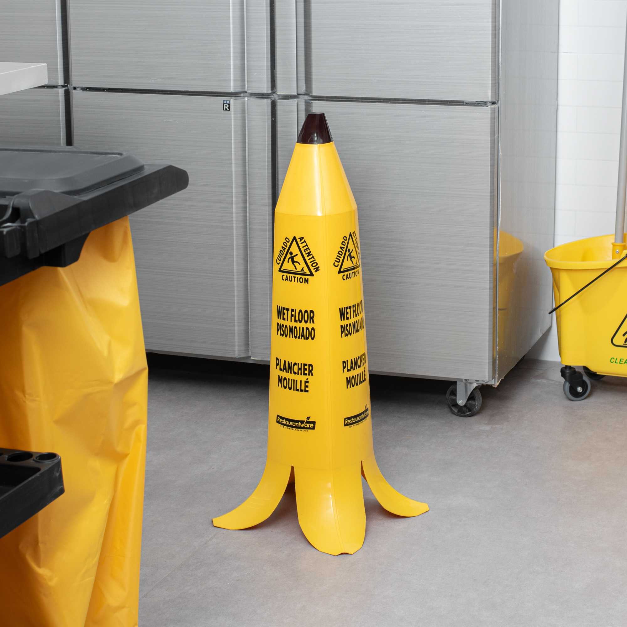 - Banana-shaped design draws attention to reduce slip-and-fall accidents