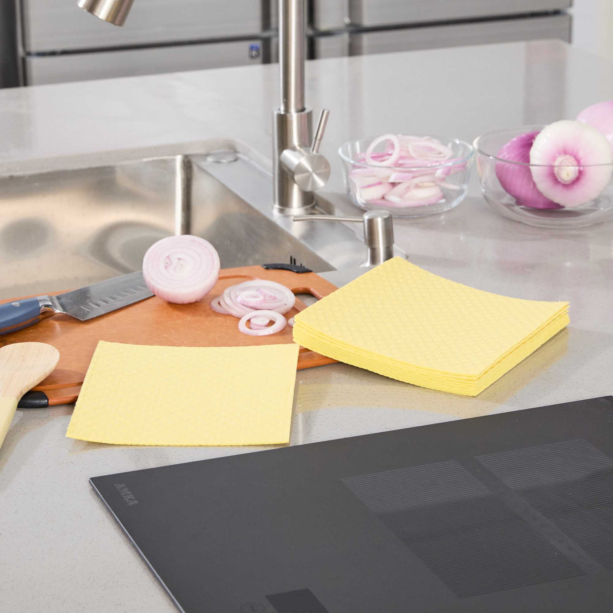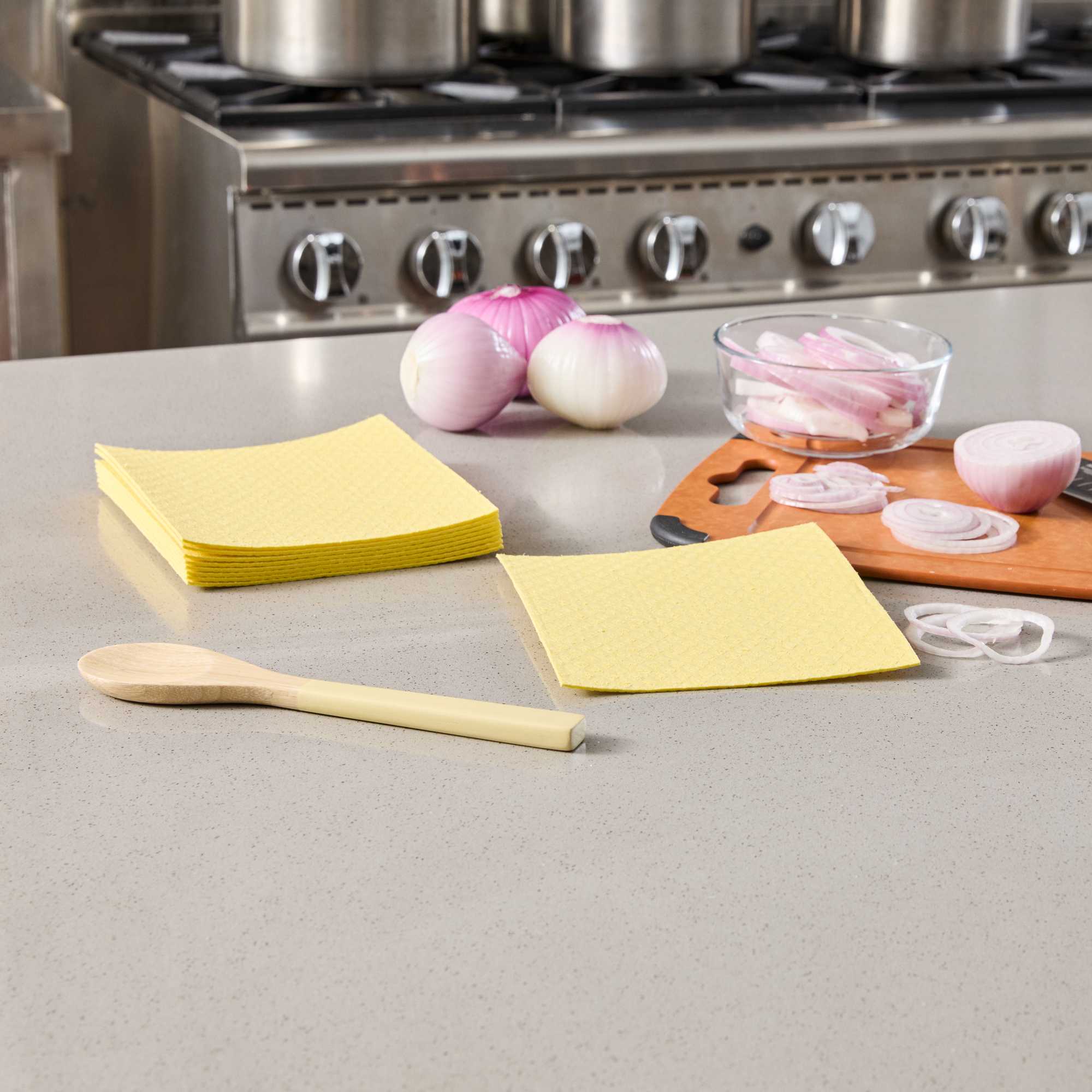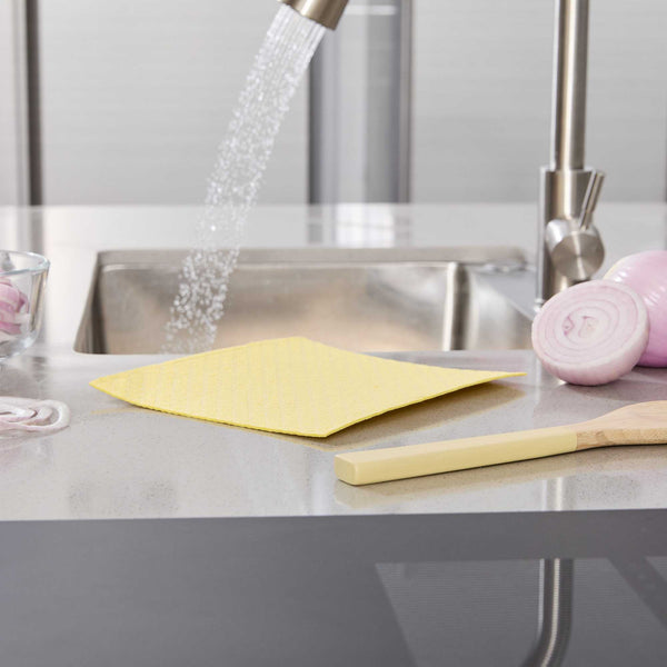 Streamline cleaning routines with our Clean Tek Professional Yellow Reusable Swedish Dishcloths. Made from ultra-absorbent cellulose, these yellow Swedish dishcloths efficiently soak up spills and wipe down surfaces, supporting quick service in commercial kitchens. Their flexible texture softens when wet for gentle cleaning and firms up when dry for effective scrubbing. Designed to be dishwashable and reusable, these cloths minimize disposable waste while maximizing long-term utility. As a biodegradable and compostable cleaning option, they align with eco-friendly initiatives in foodservice environments. Durable enough for repeated use, these reusable dishcloths provide consistent performance shift after shift. Measuring 6.77 inches by 7.68 inches, each cloth offers ample surface coverage for countertops, sinks, or equipment. Sold in a 10 count box.