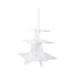 Add a touch of elegance to your next dining service by incorporating this darling 3-tier Eiffel Tower Dessert Stand to hold your savory hors d'oeuvres and sweet bite-sized confections. Standing 27.2 inches tall, the Eiffel Tower display stand by Restaurantware can easily serve as a decorative centerpiece to a table or focal point at a buffet spread. Made of clear acrylic, this 3 tier food display stand is designed with a clear transparent surface and scratch-resistant coating. This attractive food holder is shatter resistant and will keep a smooth and clear surface making it a reusable item to hold for the next tasty invention like mini cupcakes, macarons, chocolate truffles, and more! This Eiffel Tower cupcake holder is safe from any unwanted substances and measures at 14.6 inches in length and width. Hand wash only. You will receive one Clear Tek Acrylic Eiffel Tower 3-Tier Food Display Stand per order.