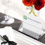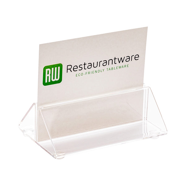 Use this elegant acrylic place card holder to set your table with our Clear Tek Clear Acrylic Place Card Holder and Menu Stand. Constructed from premium acrylic, this menu holder is built to withstand the rigors of restaurant use, ensuring a long-lasting and reliable solution for displaying your menus in style. The minimalist design of this card holder is both elegant and versatile, making it an ideal choice for displaying cards, menus, or other information in various settings. This acrylic menu card holder has a crystal clear finish that enhances the focus on the content it holds. The sturdy base of this menu stand provides stability and ensures that your displayed menus or cards remain securely in place. This table sign stand measures 3.5 inches long by 2.5 inches wide by 1.25 inches tall. Sold in a 1 count box.