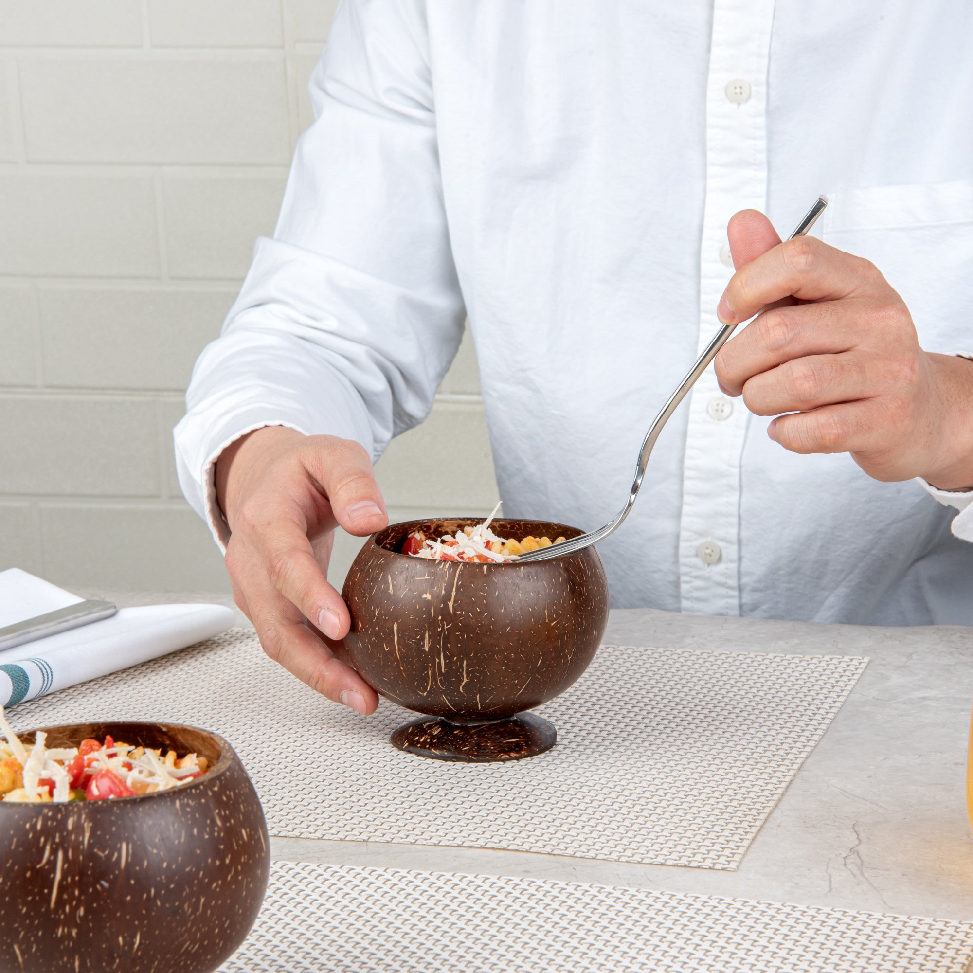 - Sustainable coconut bowl provides an eco-friendly and reusable alternative